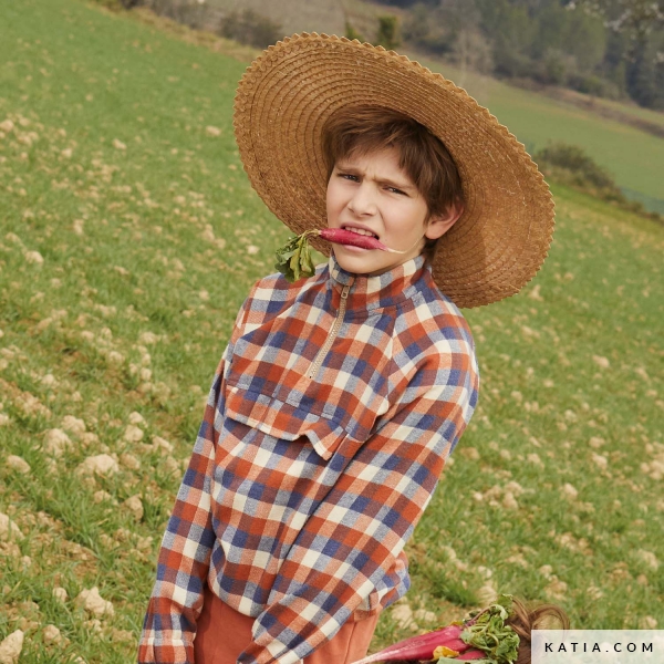 Felpa con manica raglan con cerniera e tasca frontale. Realizza questa felpa taglia bambino (da 116 cm a 152 cm) con i nostri Recycled Vichy Tricolor per ottenere una felpa calda per questo autunno-inverno. Nella rivista di modelli di cucito Cottagecore Autunno-Inverno 22/23 di Katia Fabrics hai il modello e le istruzioni passo dopo passo illustrato in modo da poter cucire la felpa.