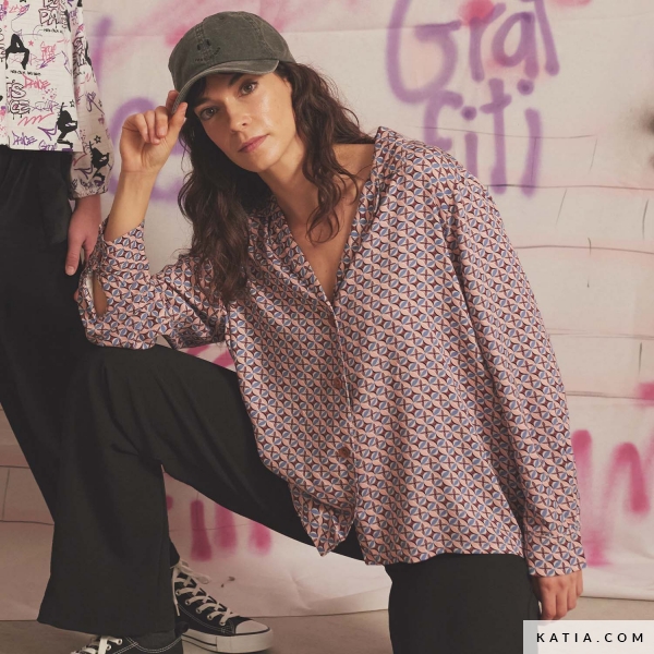Scopri il modello per camicia da donna con colletto revers. Con il suo design ampio, la patta frontale abbottonata e un colletto a revers informale, questo modello è ideale per essere creato con tessuti morbidi come la viscosa o l'ecovero sostenibile di Katia Fabrics, così come con tessuti come il popeline o la mussola. Questo modello è disponibile nella rivista di modelli Dance Autunno-Inverno 24/25 di Katia Fabrics. Non aspettare oltre, ottieni la tua rivista e inizia a cucire oggi stesso per trasformare il tuo guardaroba e riempirlo di stile con capi creati apposta per te!
