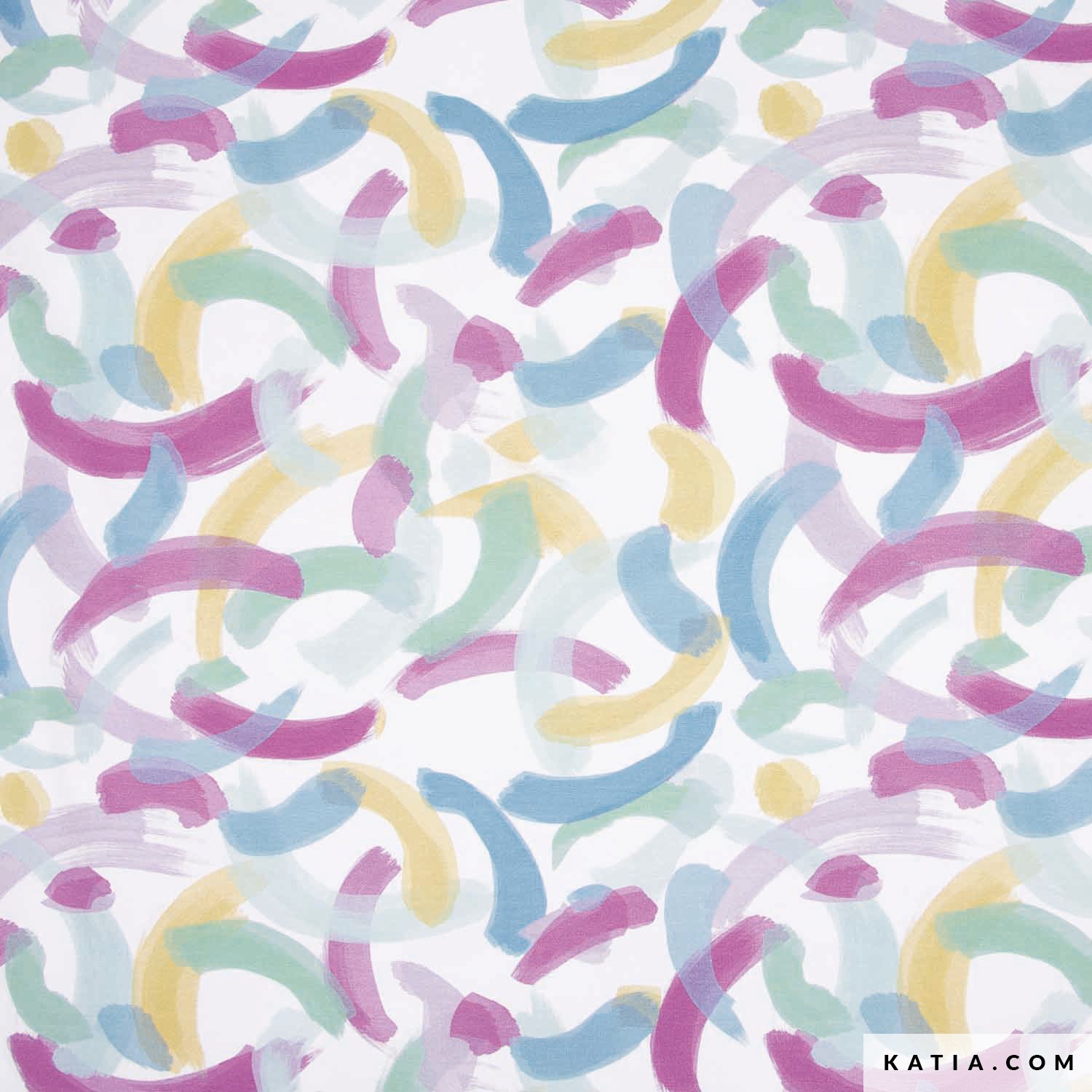Tessuto t-shirt con un bel disegno astratto nei colori verde, turchese e lilla su sfondo ecrù. È un tessuto in maglia di cotone con il 5 % di elastan nella sua composizione, questo gli conferisce maggiore flessibilità e comfort per cucire capi comodi per tutta la famiglia. Il tessuto in maglia per t-shirt Jersey Ice Cream Abstract di Katia Fabrics è l'ideale per cucire abiti originali o t-shirt per i più piccoli. Nella nostra rivista di modelli di cucito Mediterranean Primavera-Estate 23, trova le idee che ti servono per cucire quest'estate.