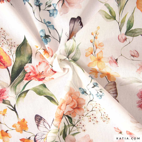 Dai vita alle tue idee più sostenibili con il tessuto riciclato Amazonia Butterfly di Katia Fabrics, un tessuto resistente e corposo decorato con una splendida stampa ad acquerello di fiori tropicali e farfalle su fondo bianco sporco. La combinazione di estetica naturale e coscienza ecologica lo rende perfetto per borse, zaini, beauty case, cuscini, fodere e progetti di decorazione creativa. Inoltre, la sua struttura rigida permette di lavorare facilmente creazioni che richiedono stabilità. Scopri la collezione di tele riciclate di Katia Fabrics.