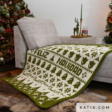 Il modello include una sezione personalizzabile per lavorare all'uncinetto il messaggio o l'augurio di Natale che desideri nel Mosaic Crochet. Oltre a questo Merry Blanket Kit, avrai bisogno dei seguenti strumenti (non inclusi nel kit): un uncinetto da 4,5 mm, un ago da lana e forbici. Misure: circa 110 x 140 cm.