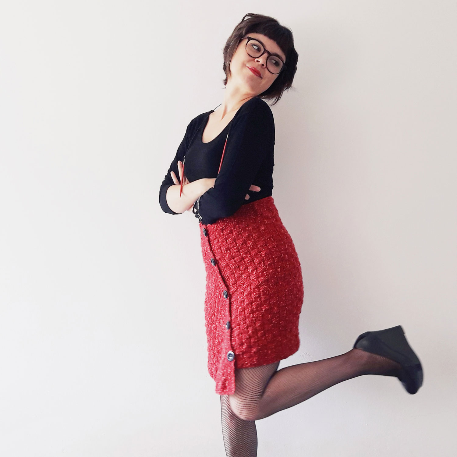 La gonna Red Velvet è ispirata agli anni '40. Una gonna a tubino che, grazie alla particolare trama, si adatta al corpo come fosse un guanto. Comoda e calda per l'inverno che sta arrivando!La mistura di lana vergine e di Merino Flamé la rende soffice e morbida, mentre il cotone da al tessuto consistenza e struttura. Grazie a ciò, qualsiasi punto in rilievo sarà perfetto senza la necessità di bloccare il capo. Questo colore ha un vantaggio in più: lavorandolo si crea un effetto velluto, da qui il nome super elegante e sexy di Gonna Red Velvet.