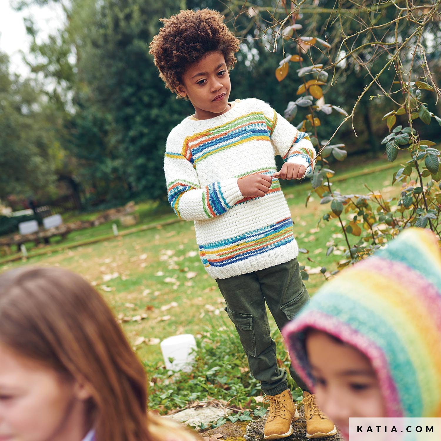 Goditi la realizzazione di questo meraviglioso maglione per bambini con strisce color crema con diversi motivi alternati con strisce in Jacquard multicolore. Lo schema include istruzioni dalla taglia 2 alla taglia 10 anni e combina il filato Katia Basic Merino con il filato Katia Baby Jacquard. Questo modello semplice, ricco di colori e motivi, garantisce ore di intrattenimento!