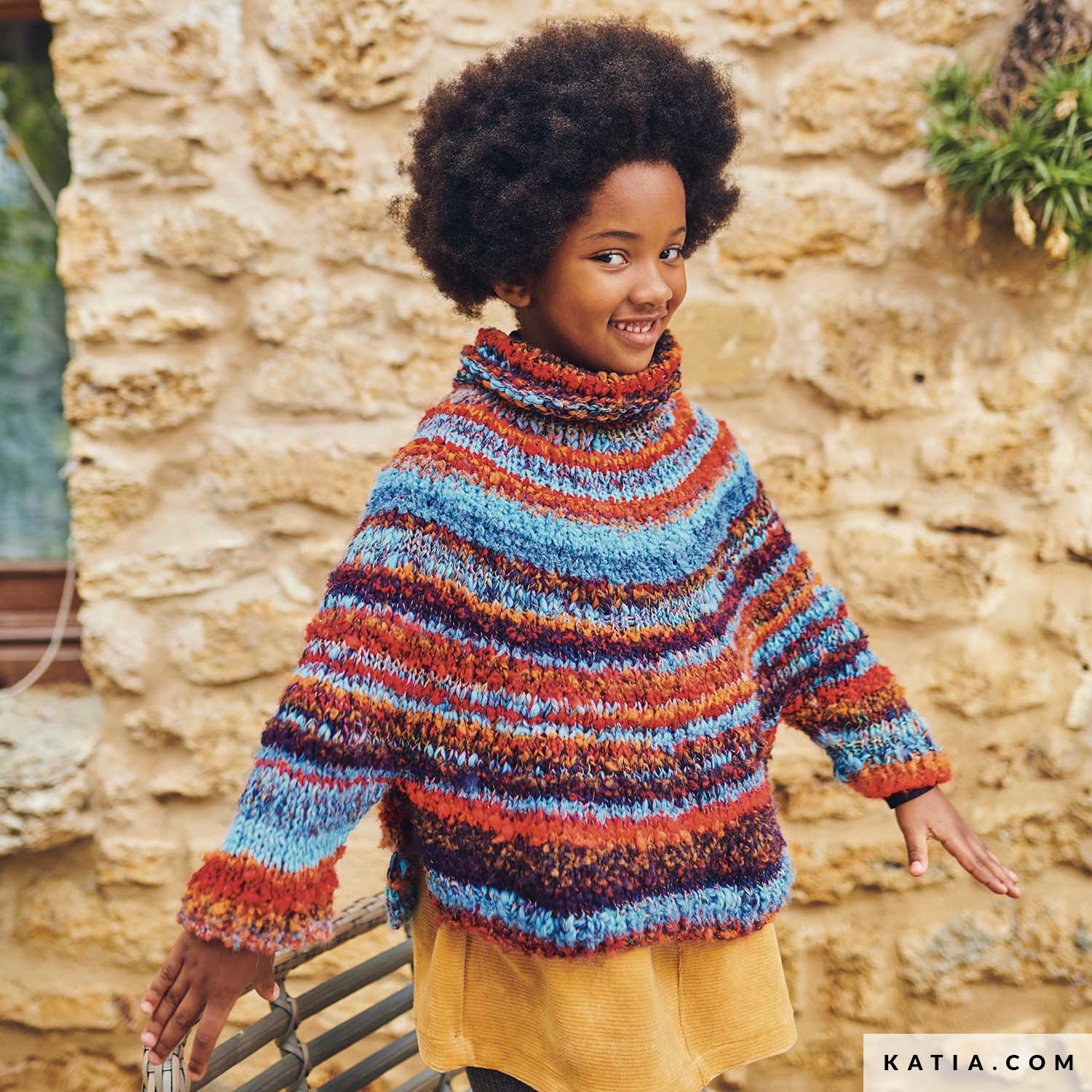 Anche i bambini possono indossare moda creativa! Come questo poncho per bambini lavorato a maglia con ferri circolari con il sorprendente Katia Funk. Con aperture ai lati e rifiniture a coste 1x1, è realizzato con un filato che da un tocco vintage moderno. Sorprendi il tuo piccolo con questo modello facile da seguire disponibile dalla taglia dalla 4 alla 12 anni!