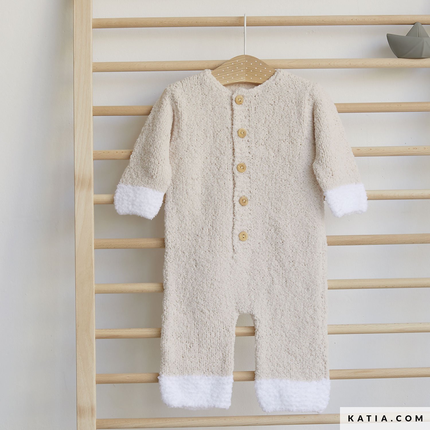 Tutina a maniche lunghe dal tocco peluche con Copito Soft. Segui lo schema per lavorare questo semplice motivo. Apertura sul davanti con chiusura a bottoni per una facile vestizione e svestizione. Contrasto di colore per le maniche e i bordi di braccia e gambe per evidenziare il colore del capo.