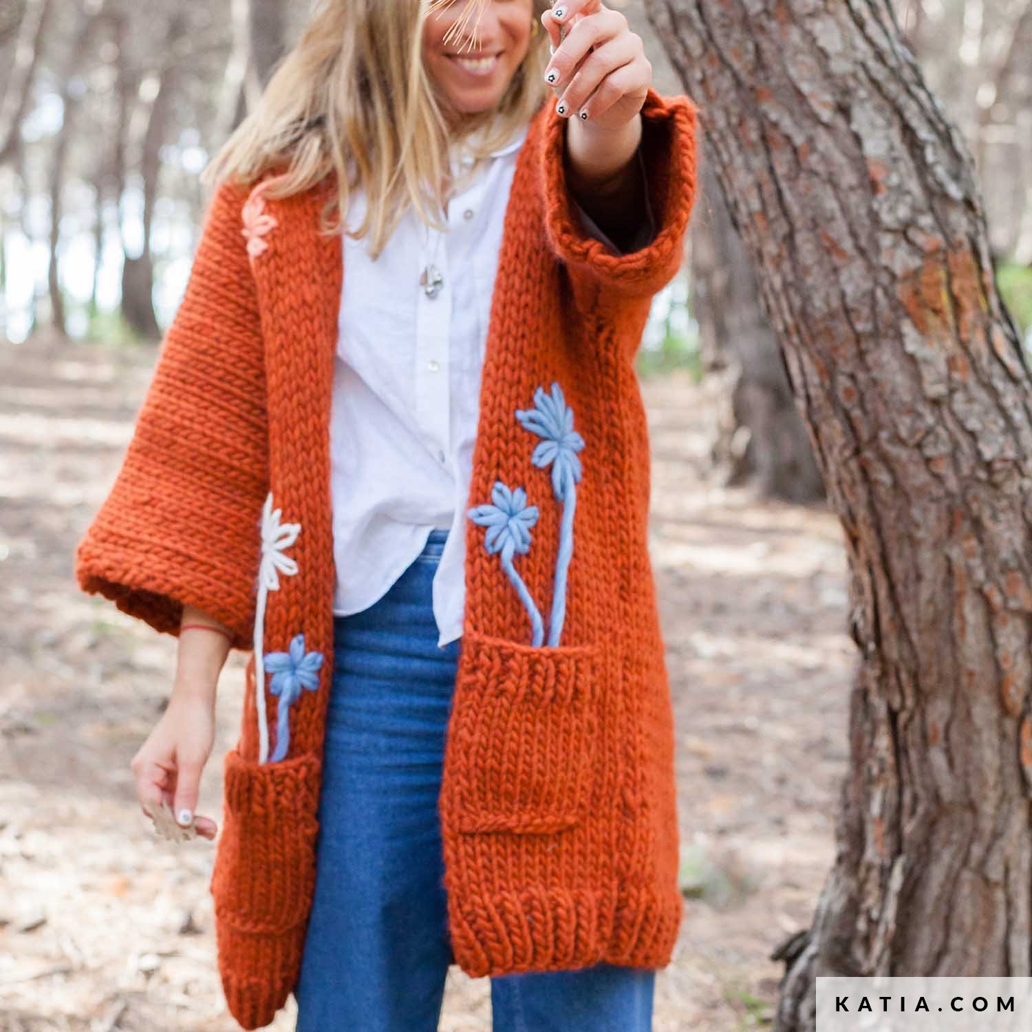 Inizia il tuo viaggio nel ricamo creativo con l’Abrigo Paseo, un capo lungo e aperto, ricamato con mazzi di margherite. Il disegno di base si ottiene grazie allo spessore del filato Katia Love Wool, che risalta in maniera spettacolare il ricamo floreale.