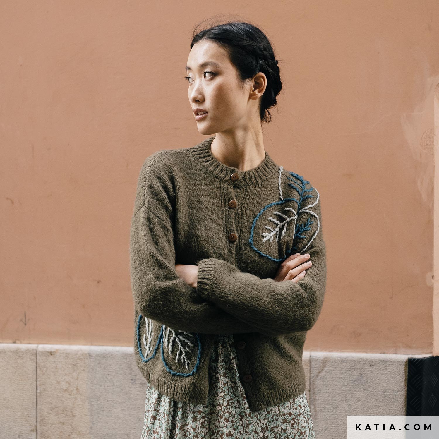 Cerchi una maglia per un look favoloso? Dai un'occhiata a questo modello di maglia con ricamo dal taglio classico lavorato ai ferri con dei gomitoli di Snowy e Merino Sport. L'esclusivo ricamo a foglia, i bottoni e lo scollo tondo sono perfetti per aggiungere un tocco retrò ai tuoi abiti folk.