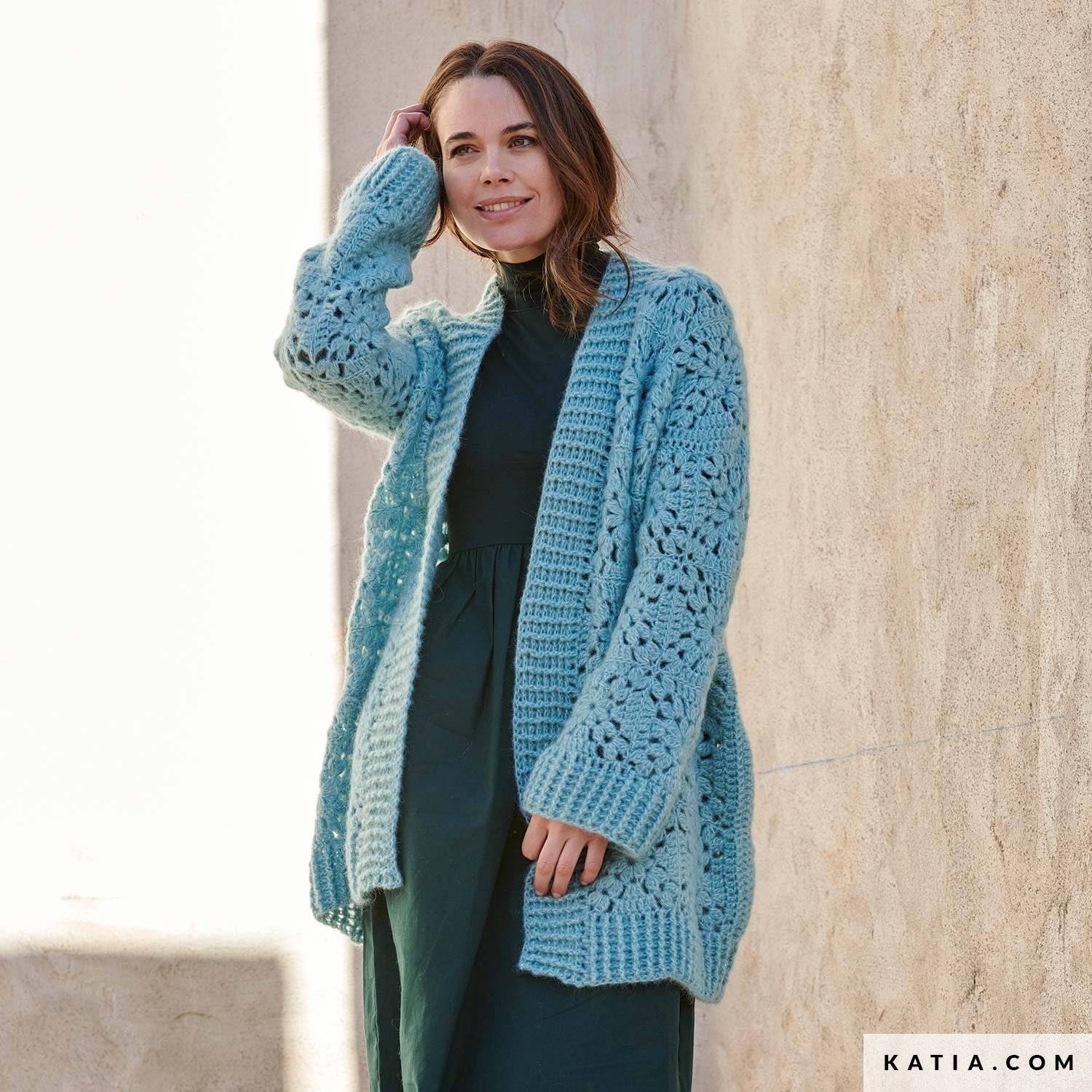 Crea con le tue mani il capo più alla moda della stagione, un cardigan lungo all'uncinetto! Devi solo fare dei quadrati granny e rifinire i dettagli come i bordi a coste all'uncinetto. Quest'autunno-inverno sfoggia look al 100% tuo con questo modello dalle linee diritte e semplici realizzato con Alpaca Silver di Concept by Katia, un'Alpaca soffice a pelo corto con un riflesso argentato. Fare la giacca del momento è più facile di quanto si pensi!