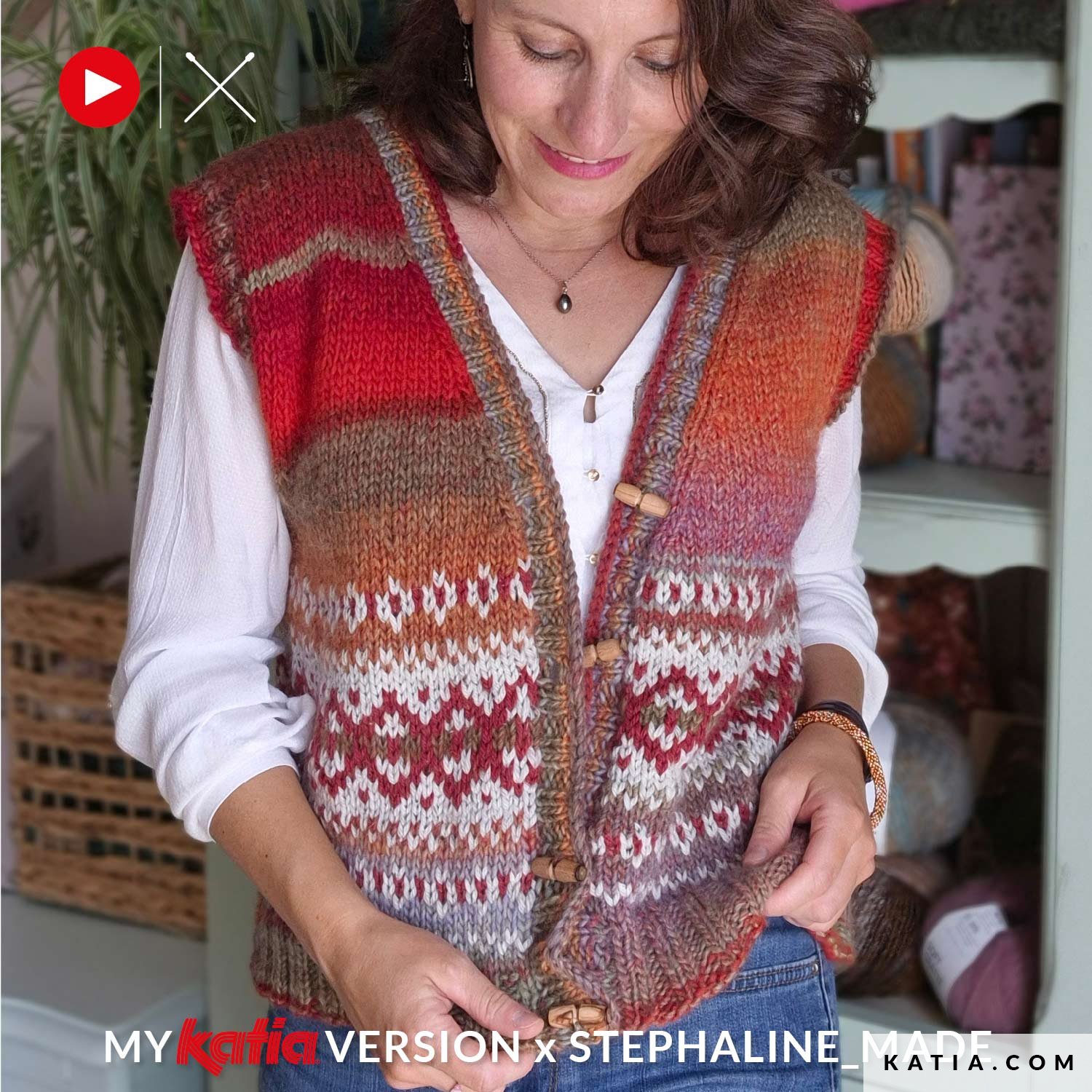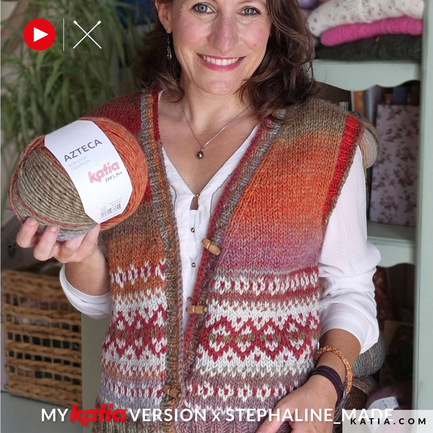 Scopri questo gilet con motivo jacquard e bottoni, lavorato a maglia con Katia Azteca e Merino Tweed. Un progetto facile e veloce da realizzare, perfetto per apprezzare i colori e la morbidezza di Katia Azteca. Nella sezione My Katia Version del blog Katia puoi scoprire la reinterpretazione di Stéphanie @stephaline_made di questo modello della rivista Katia Sport 75. Lasciati ispirare dalle sue combinazioni di colori e dai suoi consigli nel video passo dopo passo.