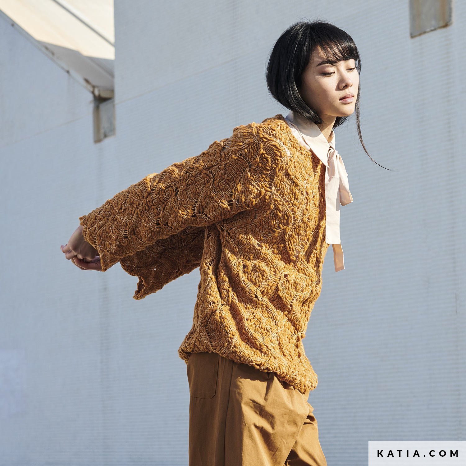 Maglia con motivi a zig-zag ondulati e traforati con spessore irregolare con Cotton-Merino Volume. In più, oltre alla particolarità del filato, si notano le maniche con bordi ondulati. Capo versatile da abbinare con pantaloni e gonne.