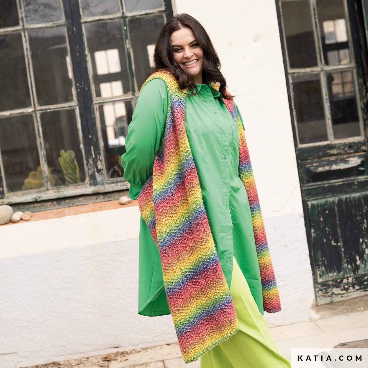 Dai vita al tuo look con il gilet-sciarpa disponibile nelle taglie Katia Plus! Questo divertente accessorio lavorato a maglia a grana di riso è perfetto per tenerti al caldo senza sentirti soffocare. Goditi il bel motivo a righe pieno di colori allegri e vibranti di Katia Funny Azteca. L'accessorio ideale per combinare il tuo stile con originalità.