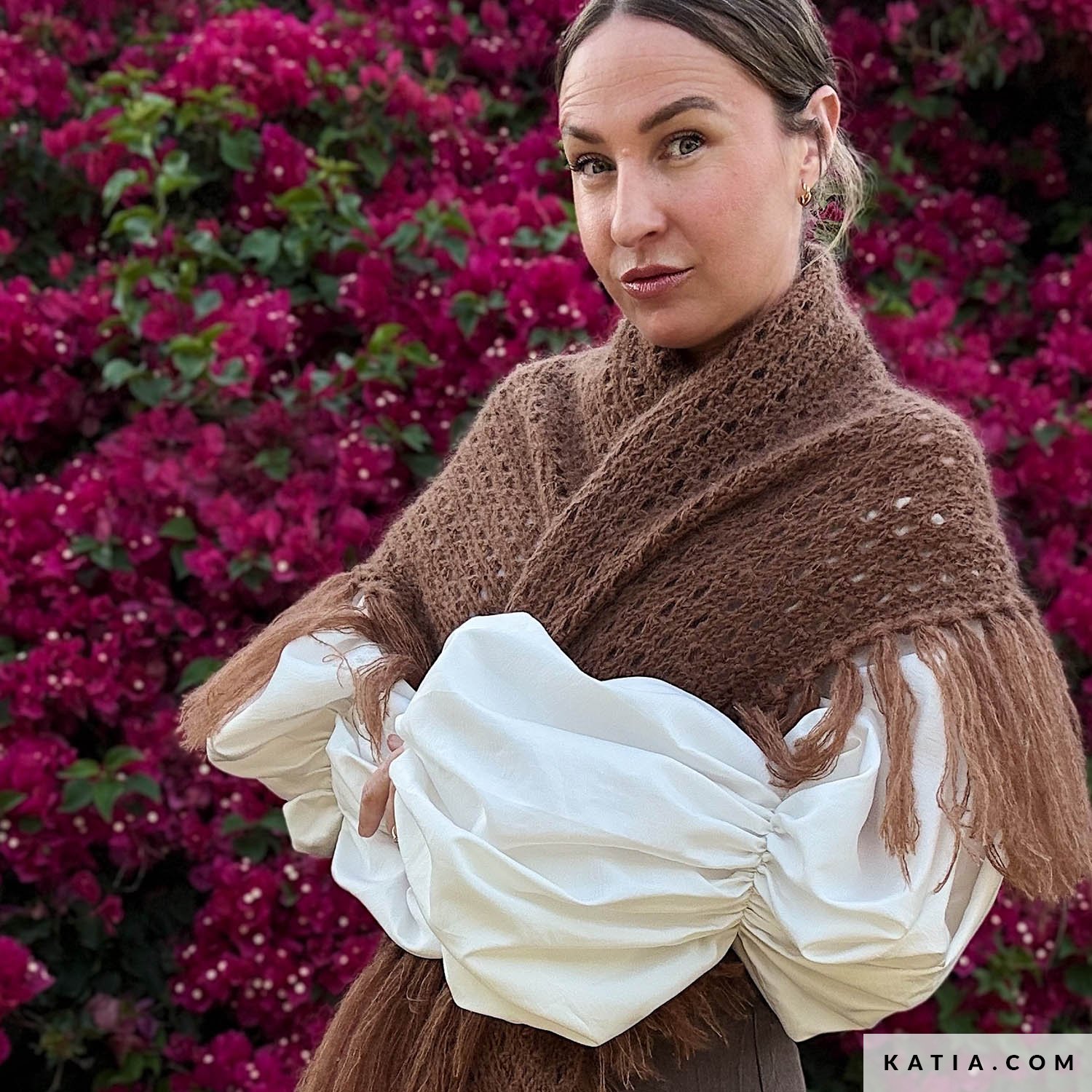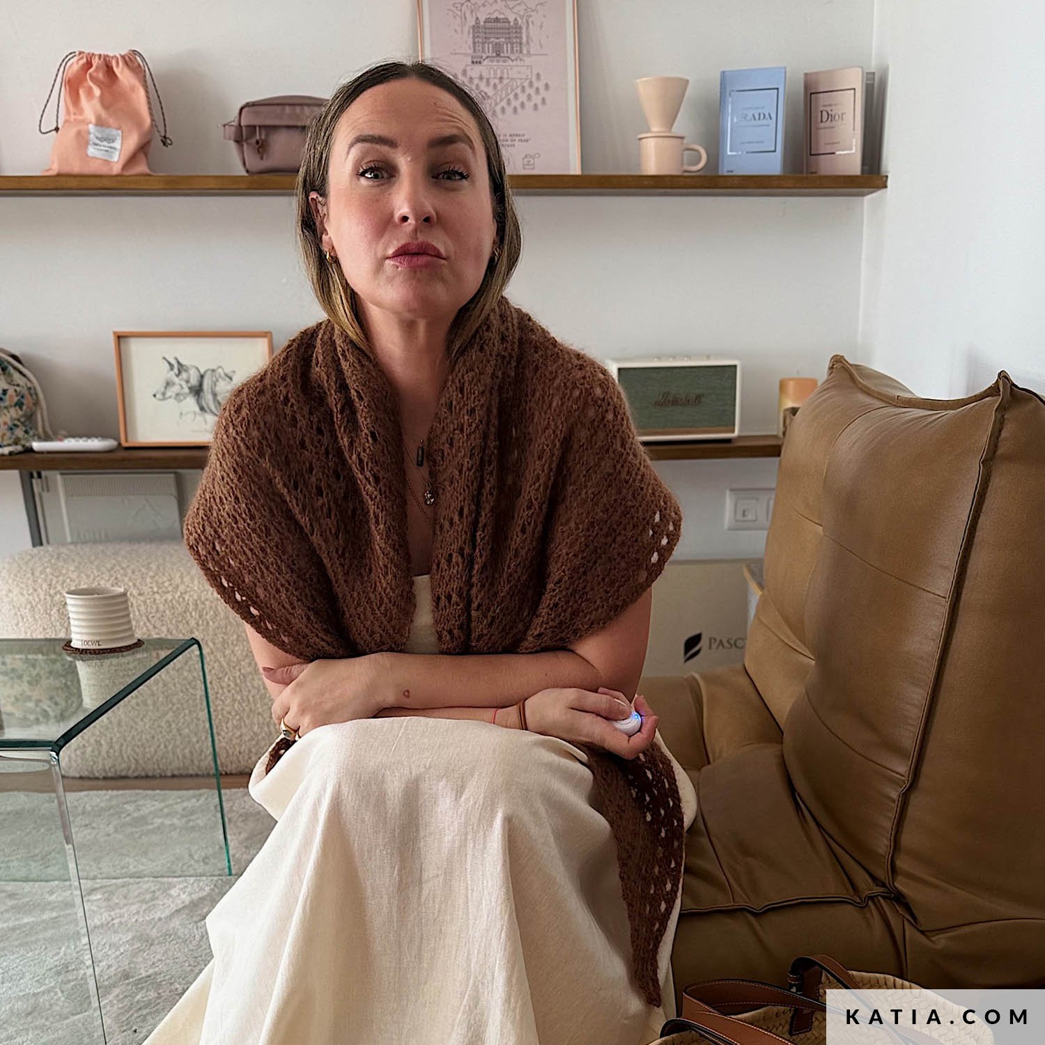 Canela è uno scialle boho creato da Alimaravillas per dimostrare che anche l’uncinetto può essere elegante e moderno. Si lavora con due fili di Concept Silky Mohair, combinando leggerezza, trafori e texture. La forma triangolare, i dettagli traforati e le lunghe frange danno carattere a questo accessorio avvolgente. Crea Canela e porta con orgoglio il tuo stile handmade!