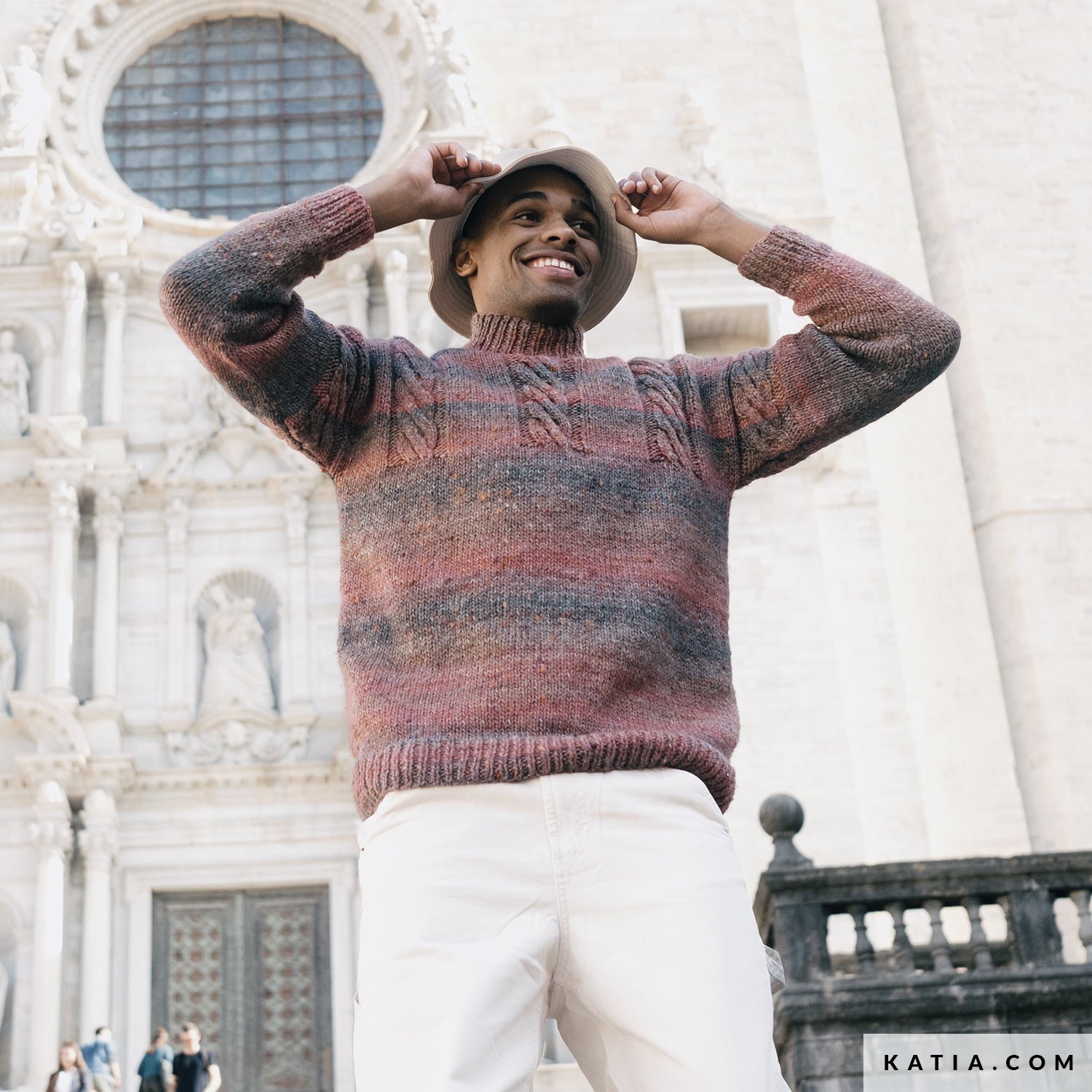 Questa maglia da uomo è perfetta per l'inverno! Un maglione con dettagli come il collo alto, le trecce sullo sprone e le maniche esaltate dall'originale stampa tweed nei colori sfumati del filato Azteca Tweed.