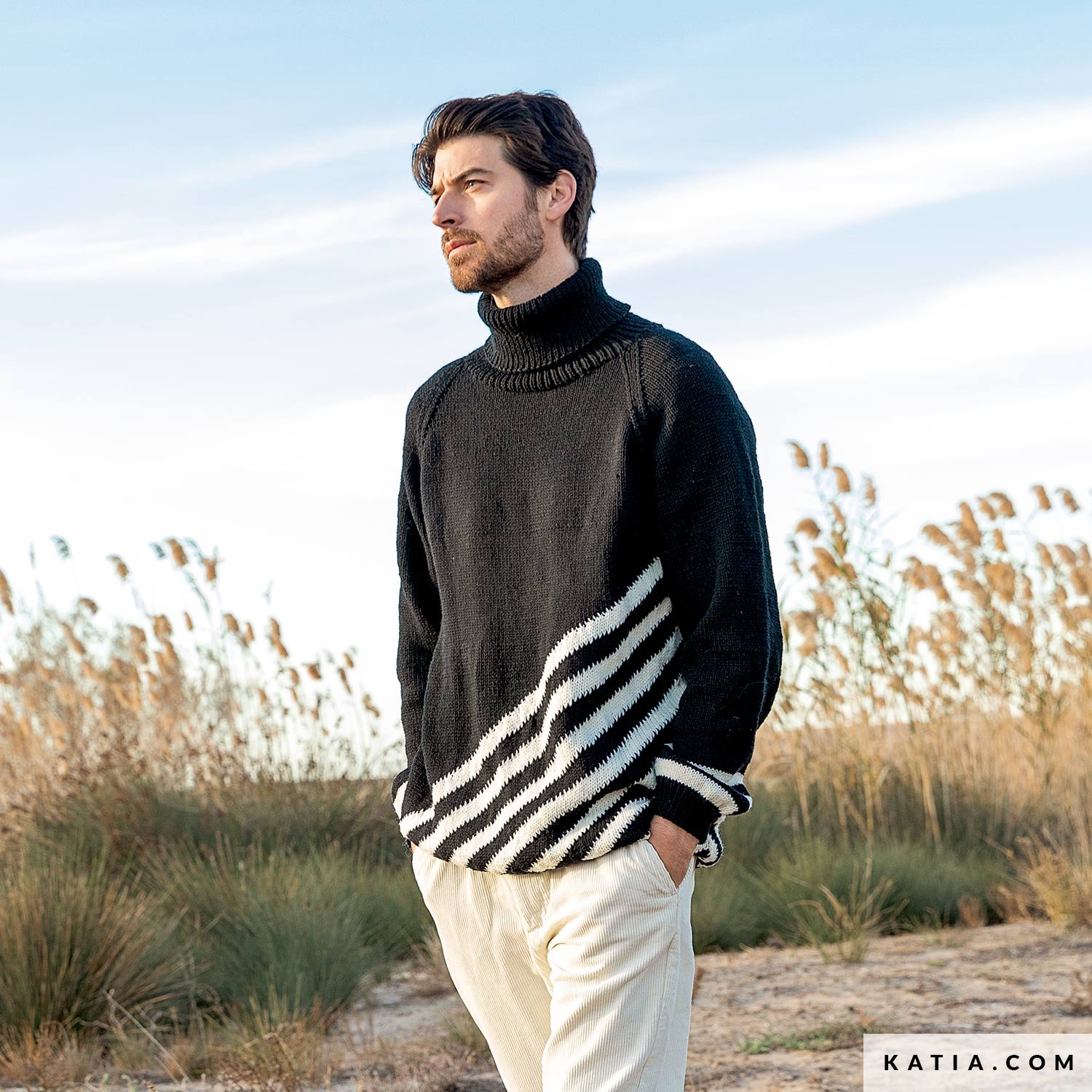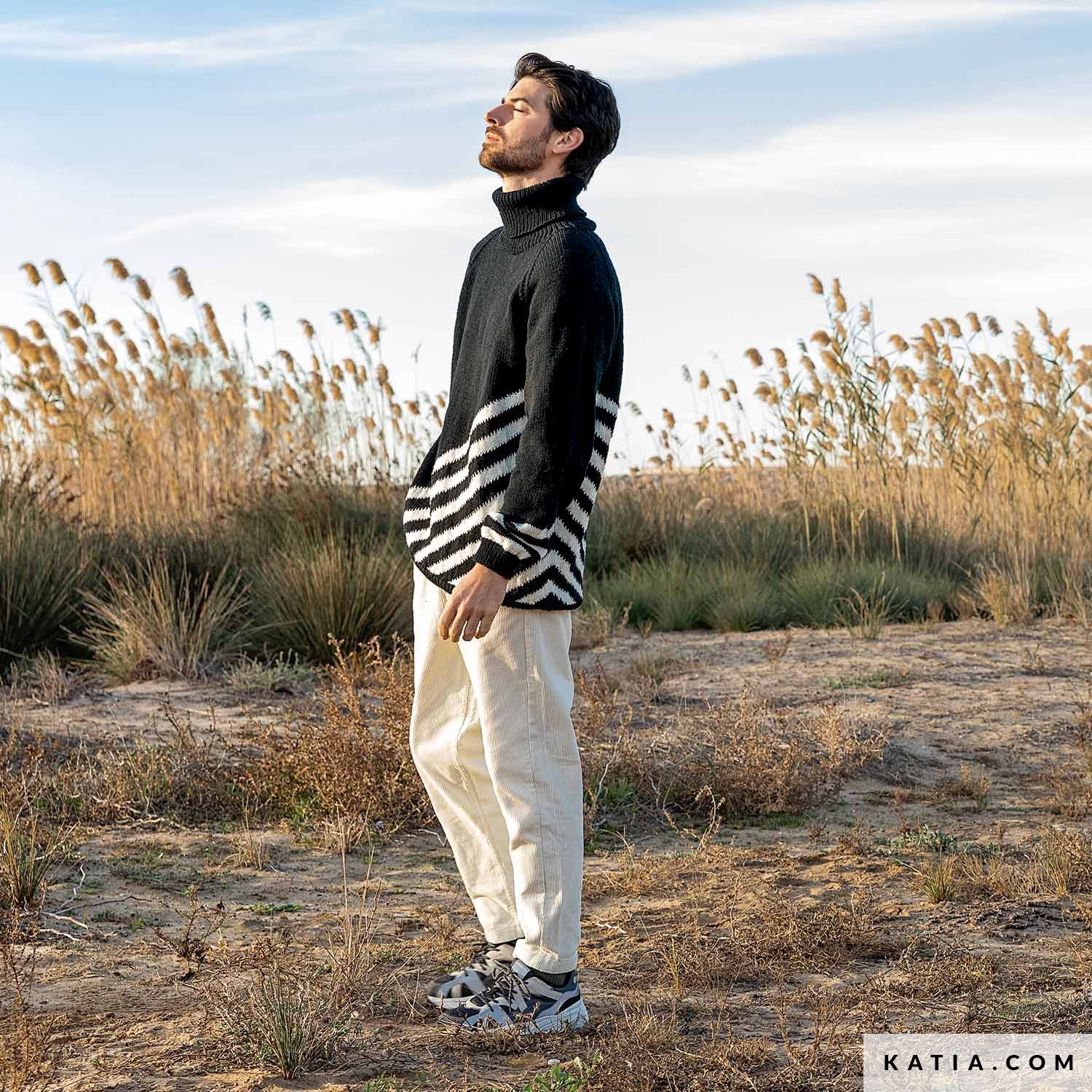 Questo modello di maglione da uomo con righe diagonali realizzato con Arles Merino è perfetto per qualsiasi occasione. Realizzato con lana francese di alta qualità, questo maglione ai ferri si distingue per il collo alto e il motivo a righe diagonali sul corpo e sulle maniche. È un capo senza tempo ideale da avere nel tuo guardaroba poichè è facile da abbinare ai tuoi jeans, pantaloni o cargo preferiti. La sua realizzazione è semplice grazie alle nostre dettagliate istruzioni in PDF!