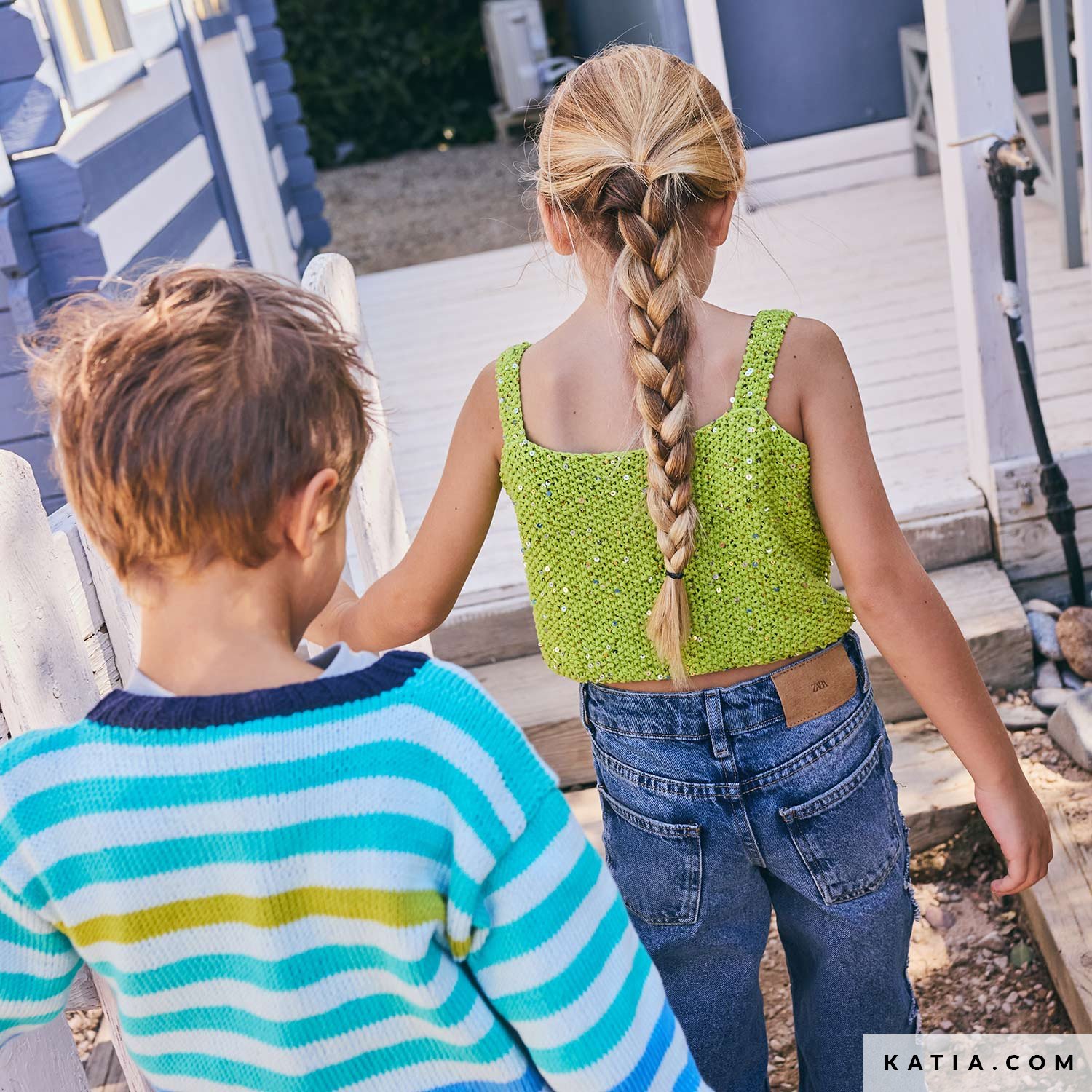 Questo top con spalline si lavora facilmente ai ferri con Katia Cleopatra, un filato di cotone con paillettes dorate e argentate che aggiungono il giusto effetto brillante. Il modello, lavorato a grana di riso, presenta un’apertura con bottoni sul davanti. Fresco, comodo e perfetto per ogni outfit estivo. Disponibile sulla rivista Katia Niños 117 e in PDF su katia.com. Lavora il nuovo capo preferito la tua piccola per questa estate.