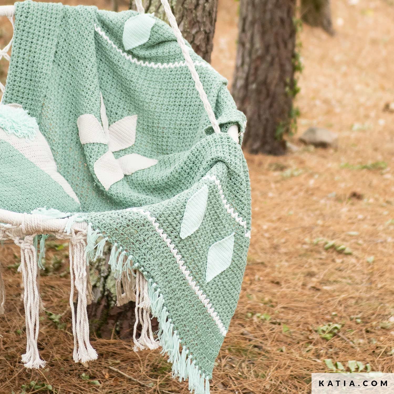 Coperta con frange e rombi all'uncinetto.