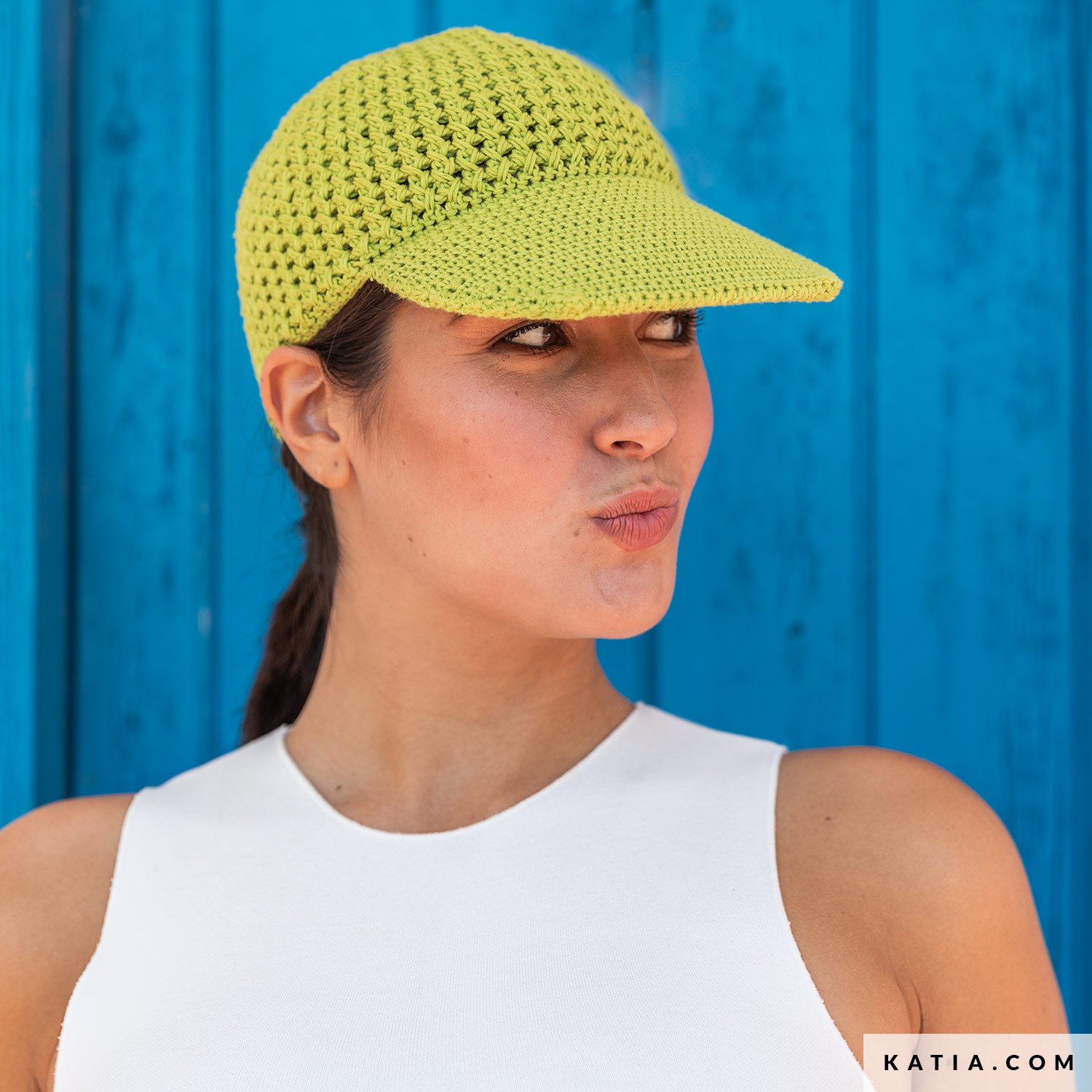 Ti proponiamo uno schema per un cappello all'uncinetto con visiera rigida e regolatore di misura posteriore. Lavorato con il filato Katia Fair Cotton in un vivace colore pistacchio, questo cappello è il complemento perfetto per dare un tocco chic a qualsiasi look. Lavorane uno in ogni colore e abbinalo a tutti i tuoi vestiti!