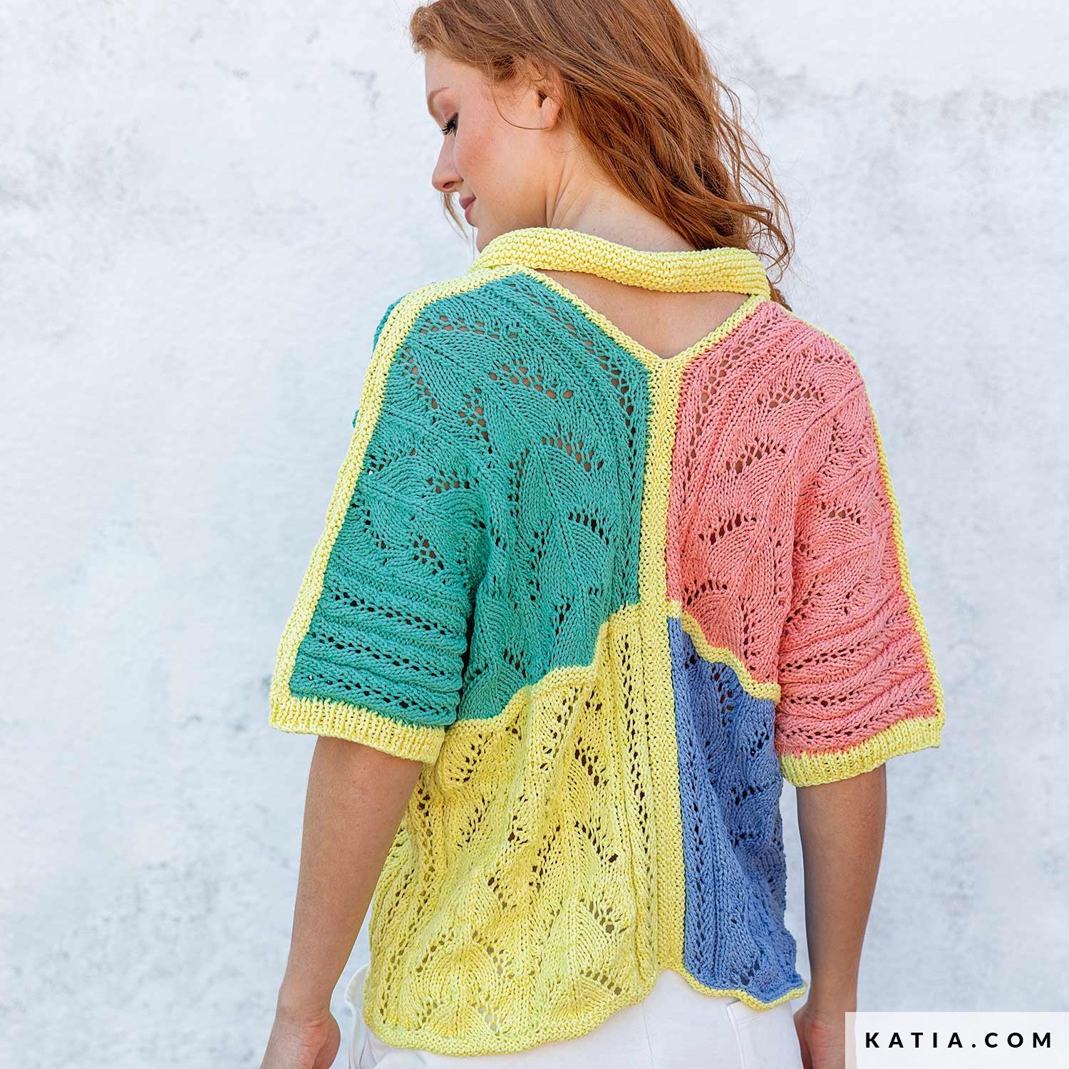 Scopri il nostro modello gratuito di maglia a maniche corte e scollo! Con il suo effetto colorblock e il delicato motivo traforato con cui è lavorato, otterrai un capo fresco, leggero e colorato per l'estate. Inoltre, il filato Katia Serendipia crea piccoli effetti lurex lungo tutta la lavorazione. Non perdertelo e scarica subito il modello!