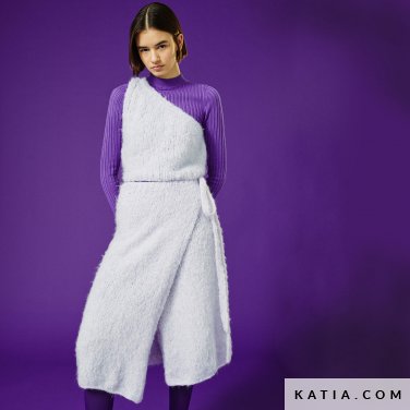 Lascia tutti a bocca aperta con questo audace completino ai ferri Camila, disegnato da @studioceliahoste! Lavora un top bandeau con bretelline e una gonna corta a righe tricolori di differente dimensione con il filato Summer Vibes di WOW! by Katia. Le bretelline del top si realizzano con la tecnica I-cord, mentre la gonna ha una abbottonatura centrale con 5 bottoni in perla. Crea stili unici con questo coordinato ai ferri per apparire come una autentica diva!