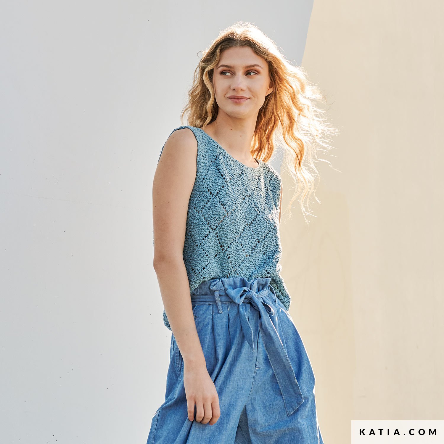 Lavora ai ferri un top leggero ed elegante con questo modello traforato della rivista Concept 17. Il motivo a rombi traforati, lo scollo rotondo e le spalline larghe lo rendono un capo raffinato per qualsiasi look estivo. Esencia di Concept by Katia, un filato flamé di cotone testurizzato e traspirante, dona un tocco originale. Disconnettiti e goditi il piacere della maglia.
