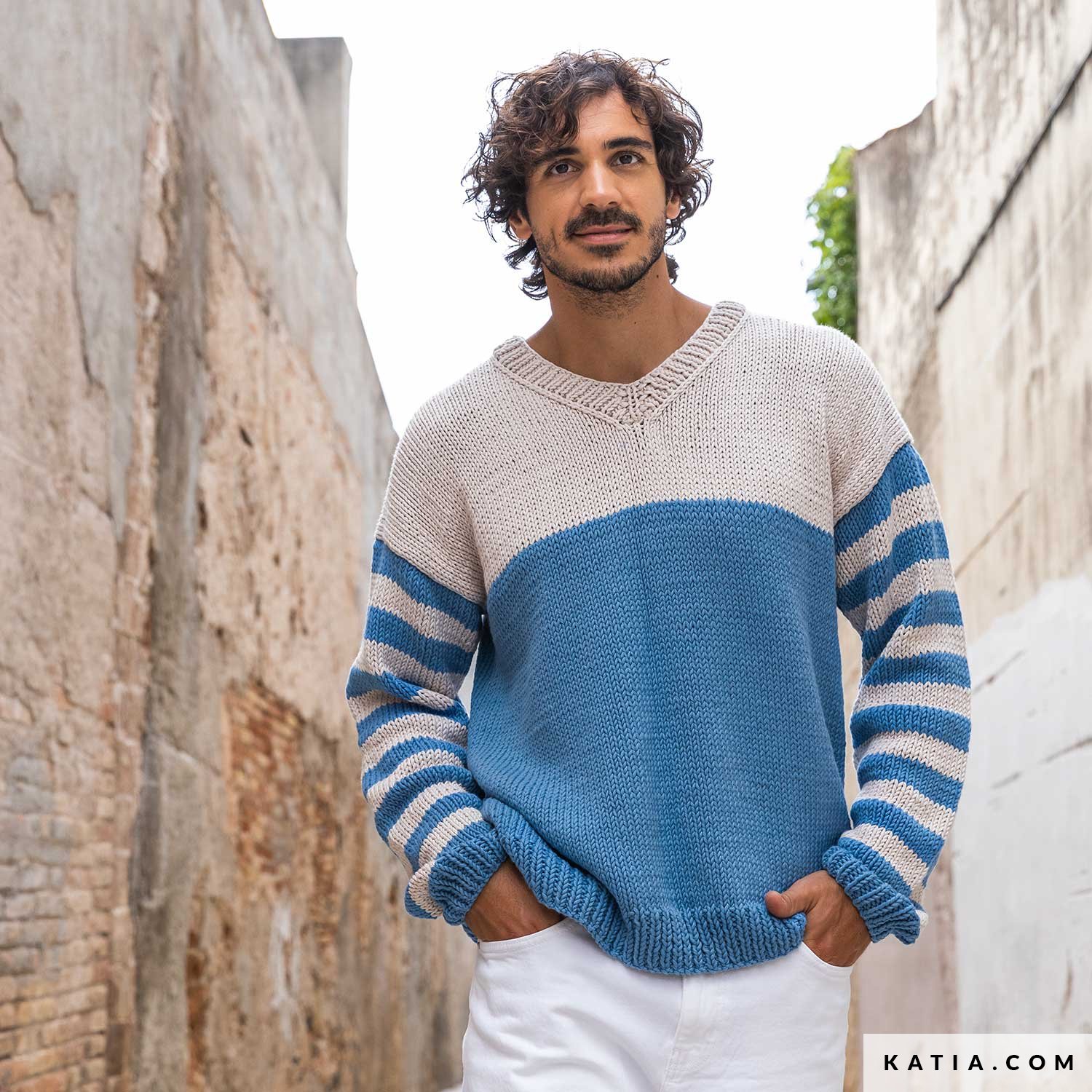 Modello di maglia ai ferri da uomo con Cotton-Merino Tweed