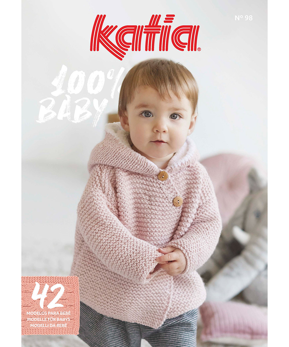 Trovi nella rivista Katia Baby 98 fino a 42 modelli di capi semplici e puliti. Scopri l'emozione di lavorare a maglia i vestiti del tuo bambino -da 0 a 2 anni- con l'ampia gamma colori dei diversi filati Katia. Giacche, maglioni, pagliaccetti, vestiti, pantaloni, mutandine... in una vasta gamma di toni rosa e blu, ma anche in beige, écru, cuoio, oltre che in varie tonalità di lilla e viola. Colori applicati in schemi a righe e dettagli ricamati che si combinano perfettamente con le stampe sottili delle nostre qualità più colorate. Non mancano ovviamente, tra le idee per lavorare a maglia per il tuo bambino adorabili coperte, cappelli con pompon, stivaletti e teneri peluche. Lavora a maglia, rilassati e divertiti durante la tua dolce attesa!