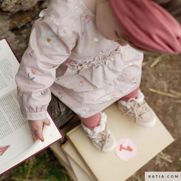 Jurk met lange mouwen, met knoopsluitingen aan het rugpand, bovenstuk en roes onder de borst. Naai dit comfortabel patroon van de jurk met stoffen zoals de bedrukte popeline of de zachte mousseline.