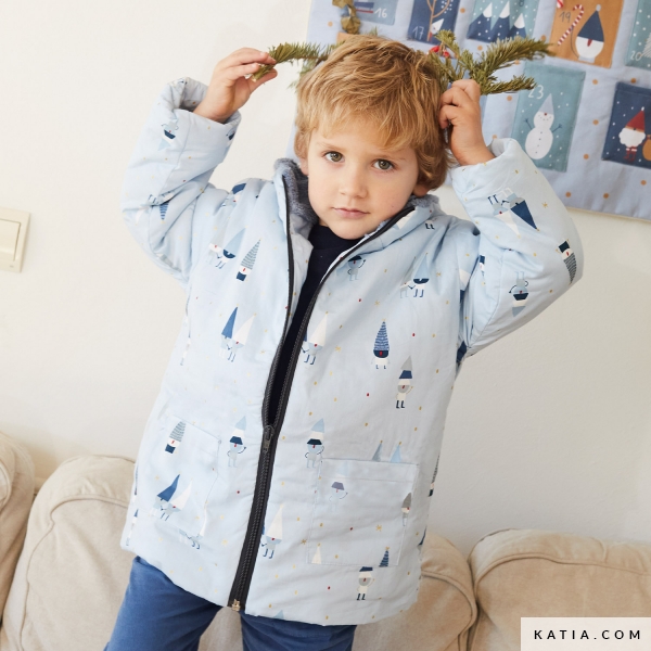 Naai dit prachtig naaipatroon voor een jas met capuchon en zakjes. Houd je baby warm met deze jas dankzij het patroon en de stap-voor-stap instructies van het naaitijdschrift Cottagecore Herfst-Winter 22/23 van Katia Fabrics. Wij raden je aan om een waterproof stof te gebruiken zoals de nieuwe Waterproof Prehistoric Rain met een leuke bedrukking van wolken en regen.