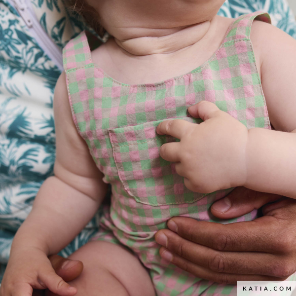 Ontdek dit praktische en schattige naaipatroon voor een korte tuinbroek met gekruiste bandjes van Katia Fabrics, ideaal voor baby’s tijdens de warmere maanden. Het ontwerp bevat een decoratief voorzakje, brede bandjes die op de rug kruisen en een elastische tailleband voor een comfortabele pasvorm. Een fris kledingstuk, gemakkelijk aan te trekken en perfect om te naaien met lichte stoffen zoals mousseline, popeline of linnen. Een onmisbaar naaiproject om unieke en comfortabele kinderkleding te maken.