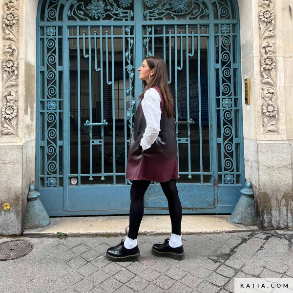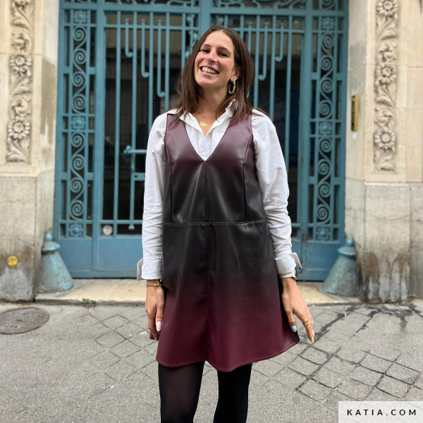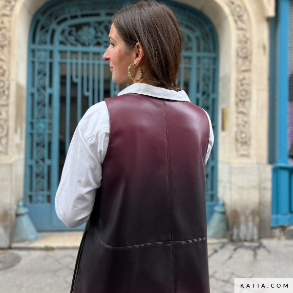 Kies voor de Vegan Leer Degradé stof van Katia Fabrics – een zachte, soepele stof met een prachtig verloop-effect dat een originele touch aan je outfit geeft. Voor een meer casual look kun je dit patroon ook in denim maken.