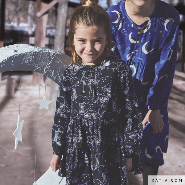 Graag presenteren wij ons patroon voor een kinderjurk met een rok met ruches en knoopsluiting op de rug! Dit patroon is perfect voor iedereen die op zoek is naar een comfortabele en toch stijlvol elegante jurk. De rok met ruches voegt volume en beweging toe, waardoor het een speelse outfitkeuze is voor elke gelegenheid. Bovendien geeft de knoopsluiting aan de achterkant de jurk een heel bijzondere en originele touch - het is gewoonweg betoverend! Kies jouw favoriete stof uit de ruime selectie van Katia Fabrics en naai een ontwerp op maat, van zachte en delicate stoffen zoals Velvet Knit tot robuustere popeline voor een jurk met meer stand en structuur. Met ons patroon kun je de perfecte jurk naaien voor elke gelegenheid, van verjaardagsfeestjes tot bruiloften. Je kleintje zal zich als een prinses voelen in deze zelfgemaakte jurk!