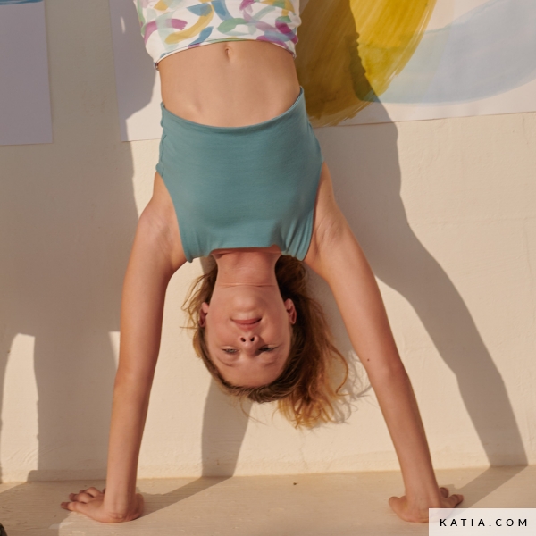 In het tijdschrift met naaipatronen Mediterranean Voorjaar-Zomer 23 van Katia Fabrics vindt u het patroon en de stap-voor-stapuitleg voor het maken van deze sportieve top voor uw kind. Wij raden aan om een willekeurige kleur van onze jersey of tricot stoffen te gebruiken. U kunt kiezen uit een ruim gamma aan felle of grappige kleuren en originele opdrukken.