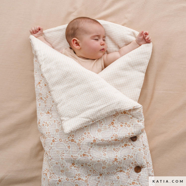 Met het patroon van de babyslaapzak Kusi van Katia Fabrics kun je een praktisch, warm en comfortabel accessoire maken voor je pasgeborene. Het omslagontwerp met knopen aan de zijkant beschermt de baby tegen de kou en houdt hem altijd goed toegedekt. Maak hem van zachte stoffen zoals mousseline, gewatteerde katoen of pluche stoffen van Katia Fabrics en je krijgt een knusse, functionele en unieke babyslaapzak of wikkeldoek.