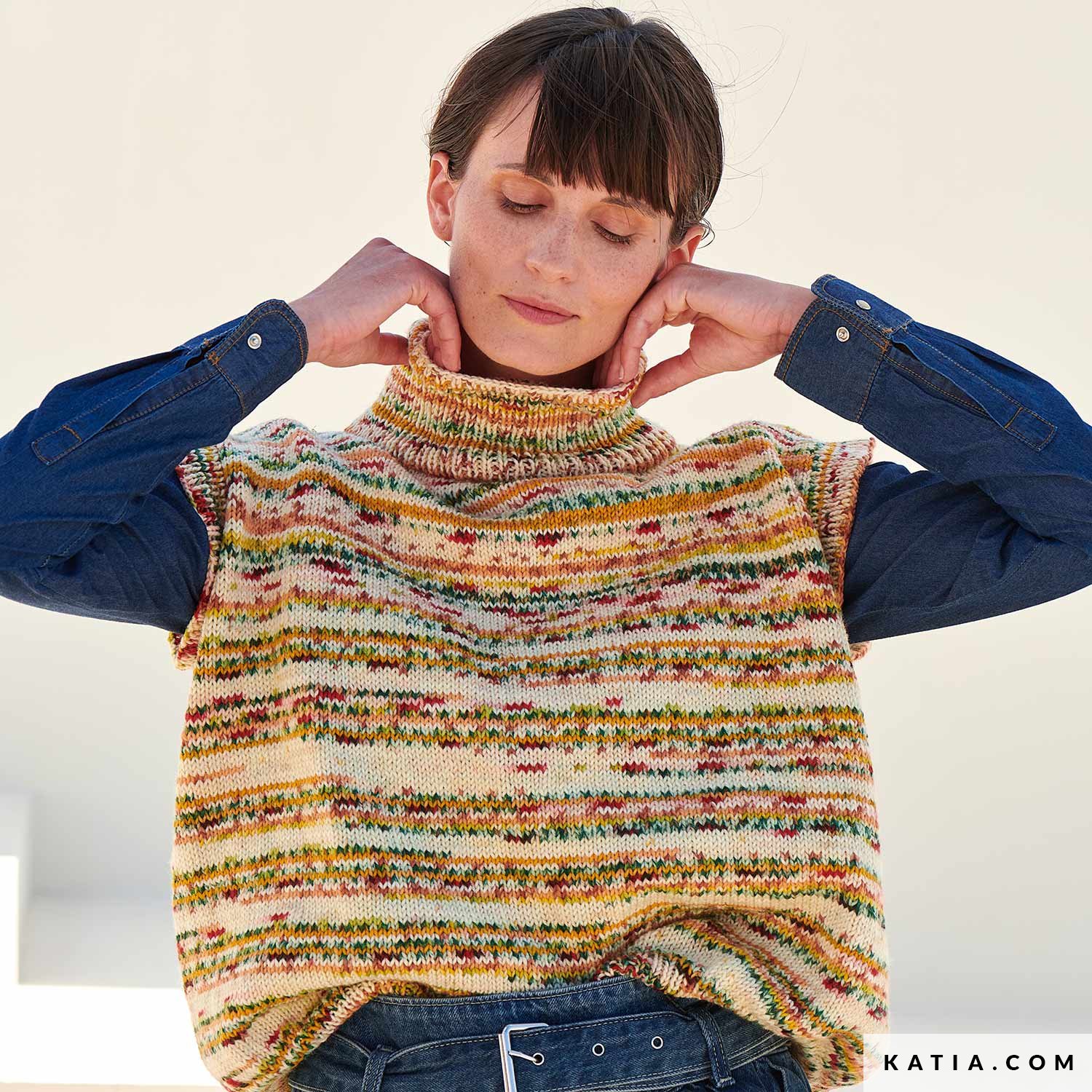 Leer hoe je een mouwloze coltrui kunt breien met rondbreinaalden. Download gratis het patroon en kies je favoriete kleur uit de Miska garen collectie van Concept by Katia. Geniet van het rustig breien van dit unieke vest met een veelkleurig jacquardpatroon. Combineer deze perfecte coltrui met jeans in de herfst/winter trendkleuren.