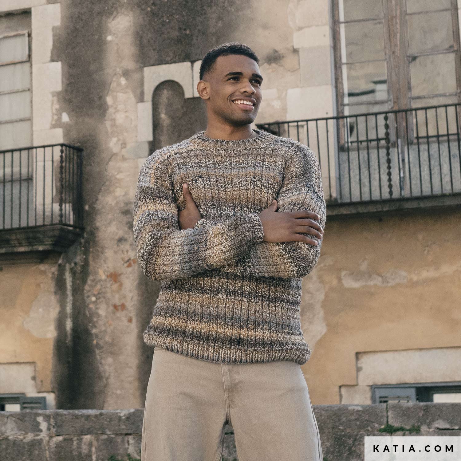 Patroon gebreide herentrui in Cotton-Merino-Tweed