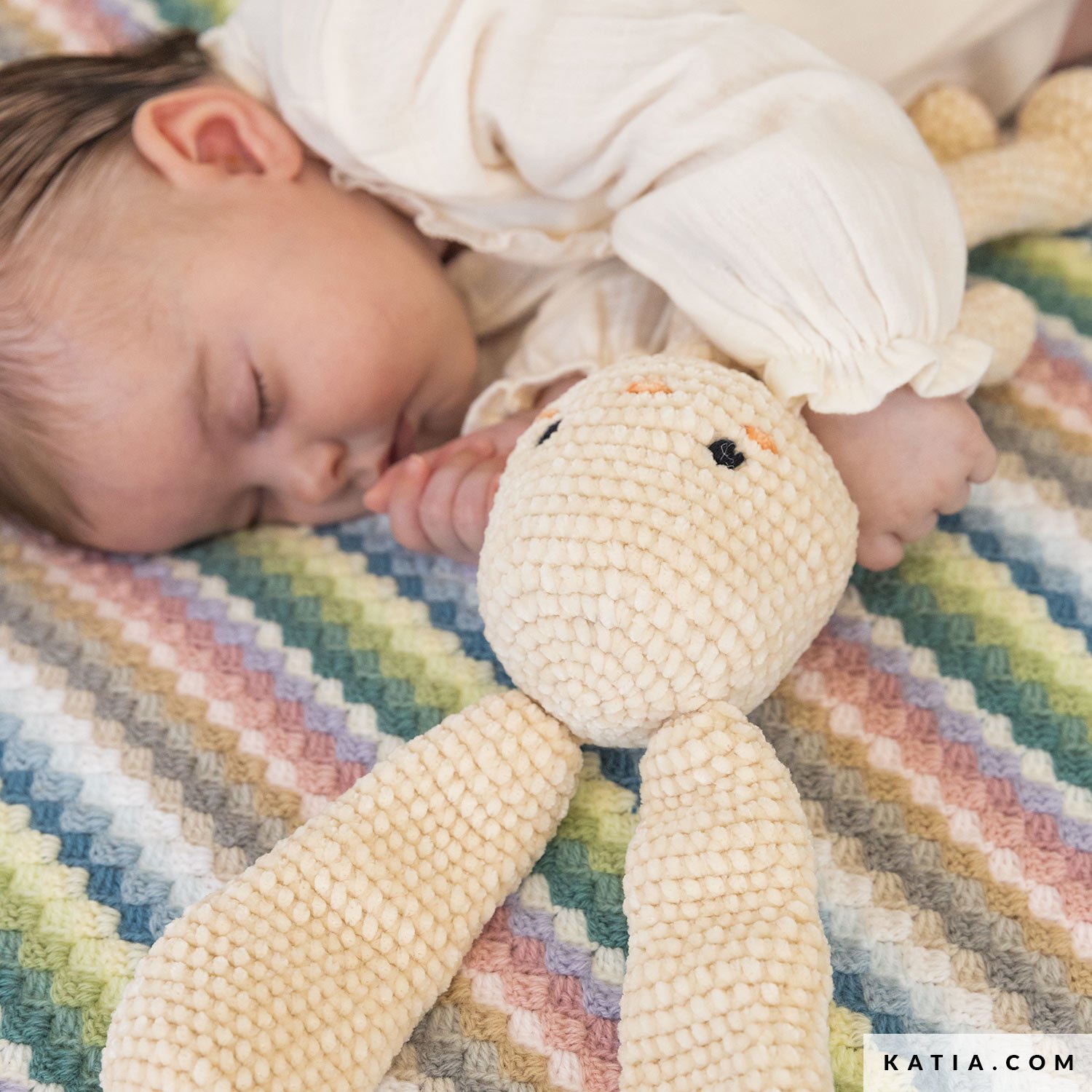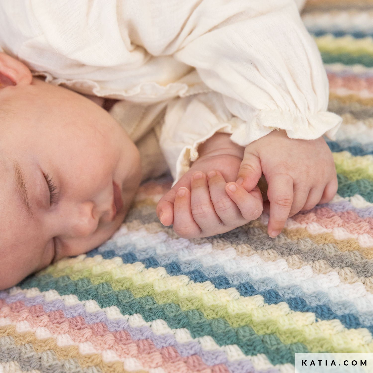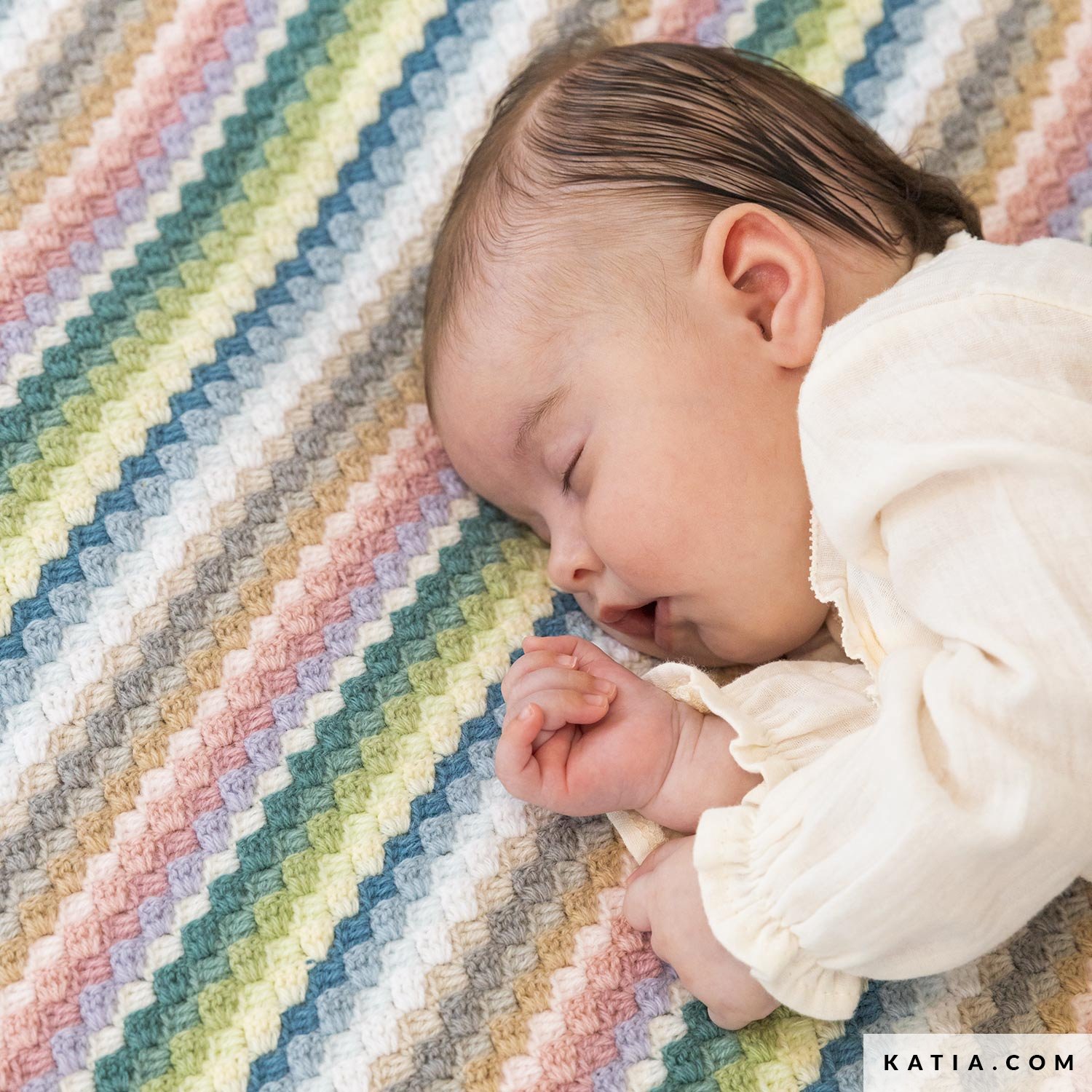 Geniet van het haken van een schattige en kleurrijke babydeken met Katia Mammy. Dit patroon maakt gebruik van de C2C (Corner to Corner) techniek om een deken te creëren met zachte strepen in een scala aan pastelkleuren van Katia Mammy. Lichtgewicht, warm en eenvoudig te onderhouden, perfect om je kleintje met liefde in te wikkelen.
