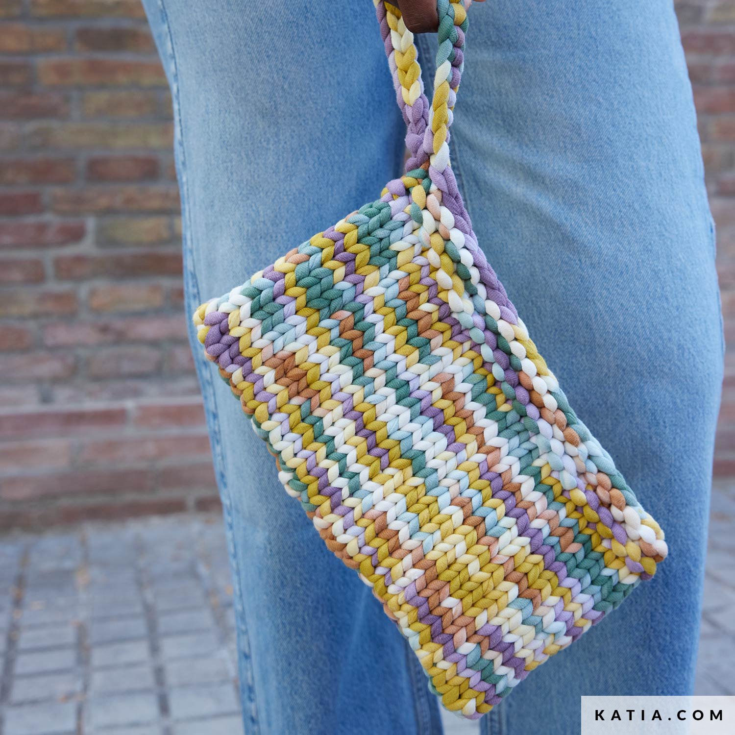 Handclutch in tricotsteek, in het rond vanaf de bodem gebreid met WOW Marshmallow multicolor en afgewerkt met een gehaakt hengsel. Voeg magneetsluitingen toe voor een praktische, comfortabele finish. Gratis patroon als PDF op katia.com. Maak een ultrakleurrijke, heerlijk zachte clutch die jouw zomerlooks laat stralen!