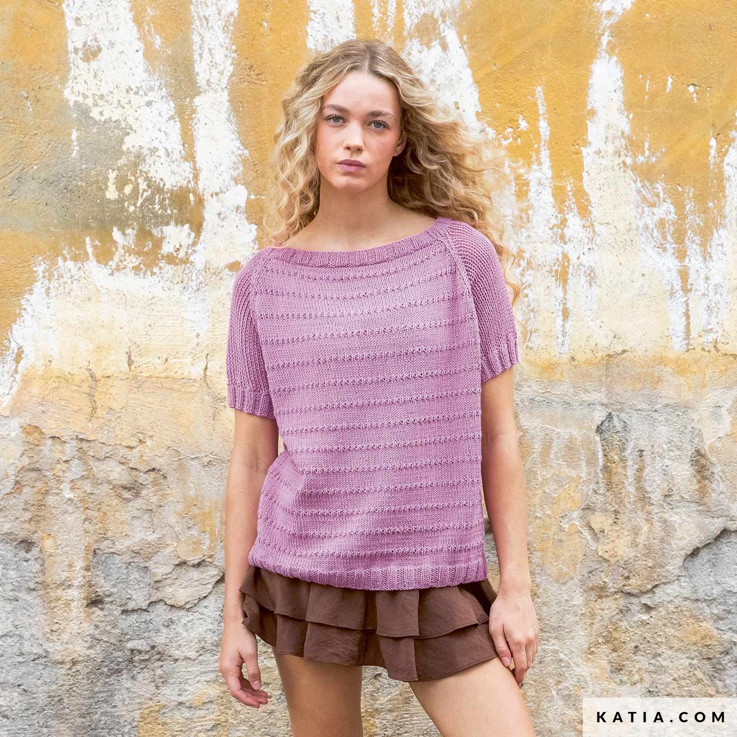 Patroon trui met korte mouwen voor dames in Comfort Cashmere