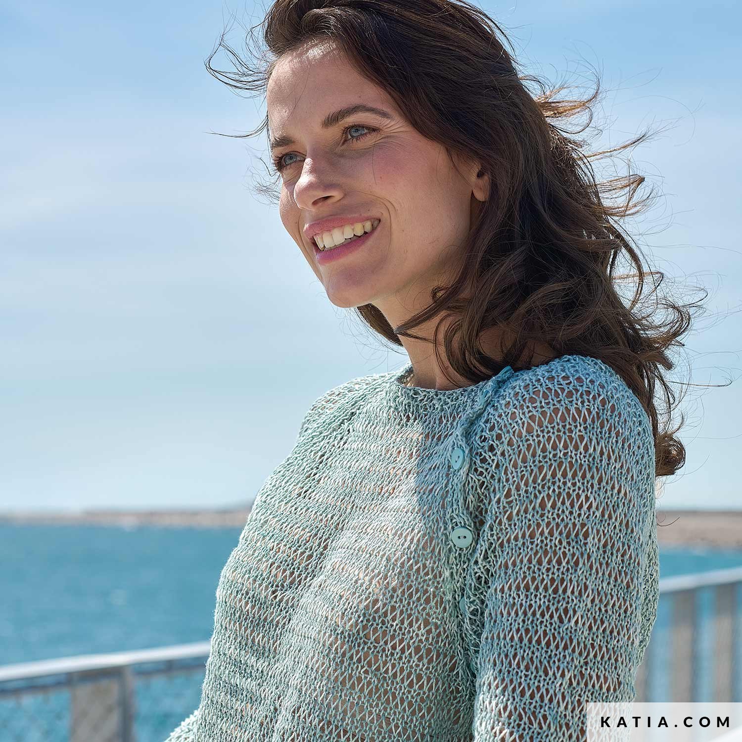 Zomerse textuur in een raglan-trui van 100% linnen – licht en fris. Strakke lijnen, schouderknopen als accent: ideaal voor zwoele zomeravonden en warme lentedagen. Concept Boho Lino zorgt voor een natuurlijke grip en een luchtige pasvorm. Patroon in Concept 19 en als pdf op katia.com. Neem de tijd om te ontwerpen en draag jouw handgemaakte kleding.
