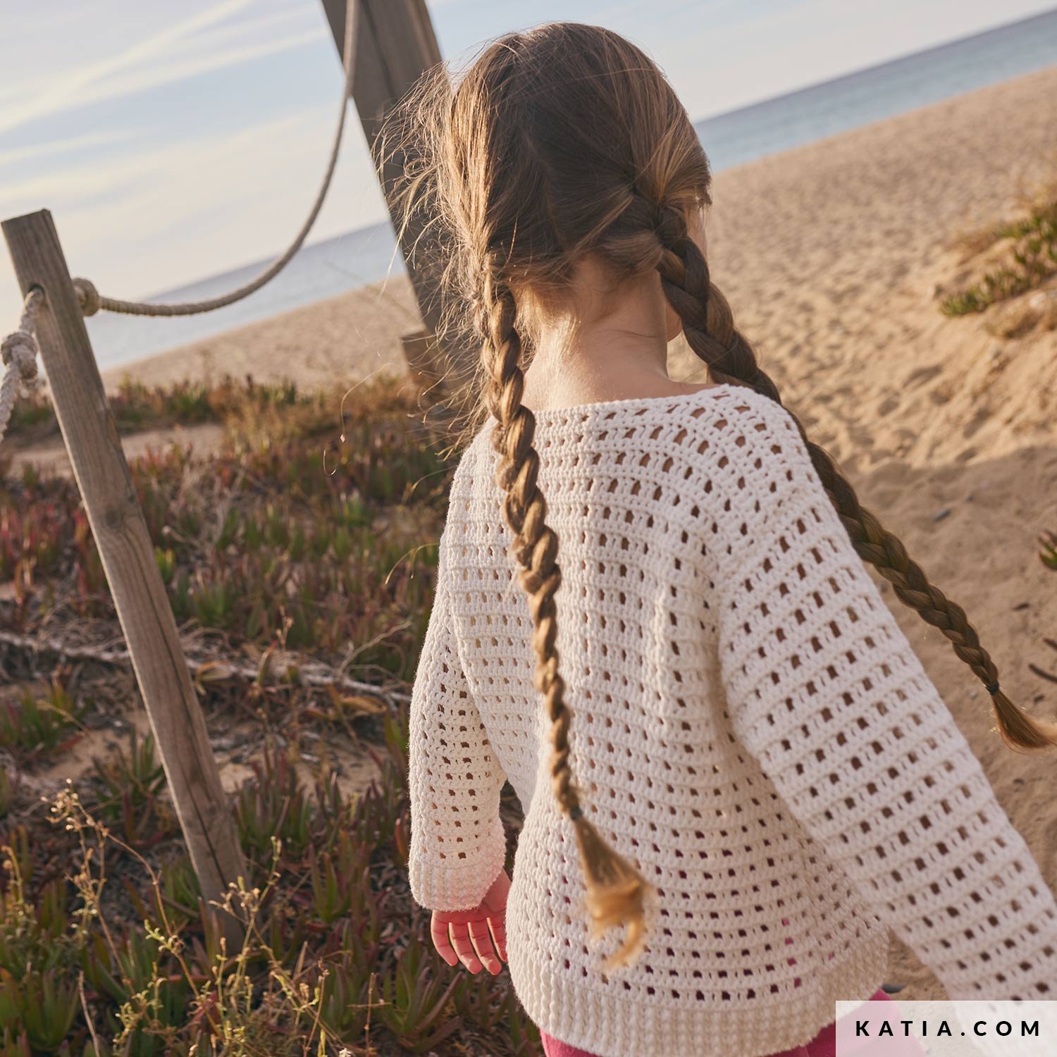 Een kleurrijke gehaakte meisjestrui met Katia Cotton 100%, een zachte, matte katoen voor gevoelige huid. Het voorpand combineert bloem-granny squares op ecru basis; de rest van het lijf is in een lichte ajoursteek. Verkrijgbaar in Katia Kinderen 117 en als PDF op katia.com. Haak een comfortabele, leuke zomertrui.
