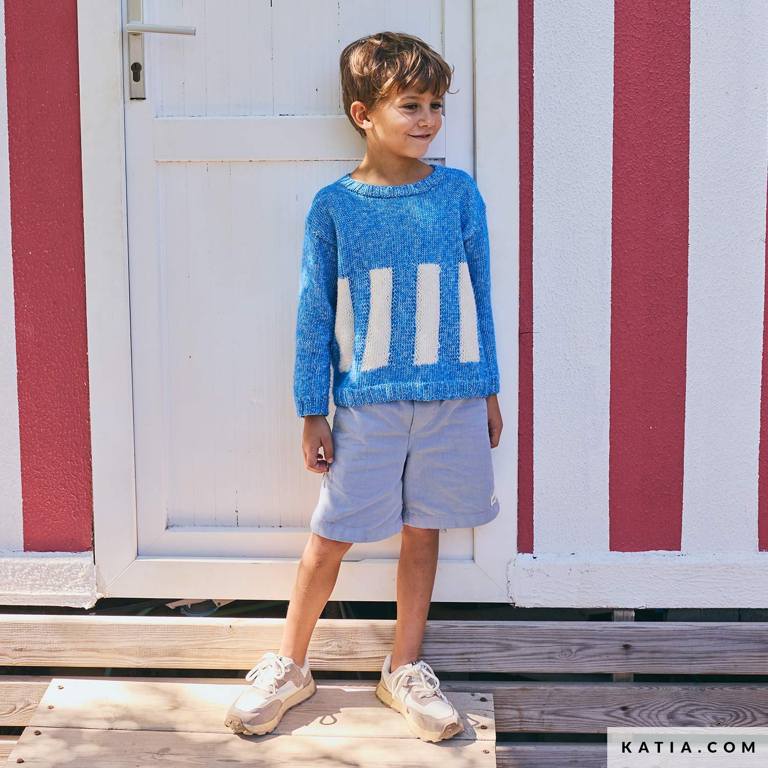 Ideaal voor het tussenseizoen: deze trui combineert de zachtheid en lichtheid van Concept Puro Cotone met een comfortabel ontwerp. Het voorpand heeft een verticale, geometrische intarsia die een moderne, speelse touch geeft. Verkrijgbaar in Katia Kinderen 117 en als PDF op katia.com. Brei een vrolijke trui die perfect is voor alle dagen.