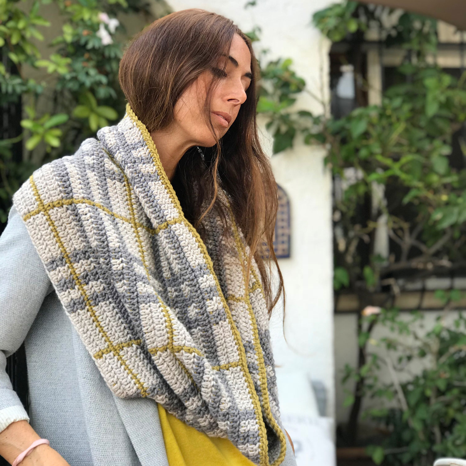 Ik heb deze losse kraag Escocia ontworpen, geïnspireerd door de Schotse tartan vierkanten. Het was erg leuk om deze geometrische print naar een haakproject te brengen. Daarom ben ik ervan overtuigd dat jij het ook leuk gaat vinden om dit te breien.