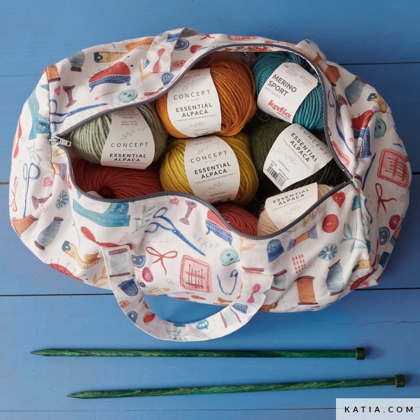 Wzór do pobrania w formacie PDF A4 do wykonania najlepszej torby na projekty dla miłośników szydełkowania i robienia na drutach. Idealny model do przechowywania igieł i haczyków, dzięki czemu można je zabrać ze sobą wszędzie. Uszyj ją z nowej tkaniny Canvas Slim, która jest dostępna w pięknych nadrukach z motywami inspirowanymi szyciem, takimi jak maszyny do szycia, włóczki, nożyczki i guziki.