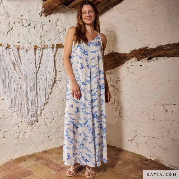 Wybierz świeżość i elegancję dzięki temu wykrojowi na sukienkę damską na cienkich ramiączkach od Katia Fabrics. Jej długi, zwiewny i lekki krój sprawia, że to niezbędny element letniej garderoby, idealny zarówno na co dzień, jak i na specjalne okazje. Możesz ją uszyć z przewiewnych tkanin, takich jak wiskoza, bawełna czy len od Katia Fabrics, uzyskując wygodną, kobiecą i bardzo korzystną sukienkę.