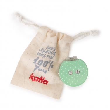 Miarką z naszej kolekcji Katia 100% You zmierzysz wszystkie rodzaje projektów, zarówno wykonanych z tkaniny, jak i z przędzy. Niezbędnik w twoim koszyku do szycia lub torbie projektowej! Miękka i elastyczna taśma miernicza w okrągłym kartonowym pudełku w ładnym miętowym kolorze ma dwa systemy pomiarowe: z jednej strony 150 cm, a z drugiej 60 cali.