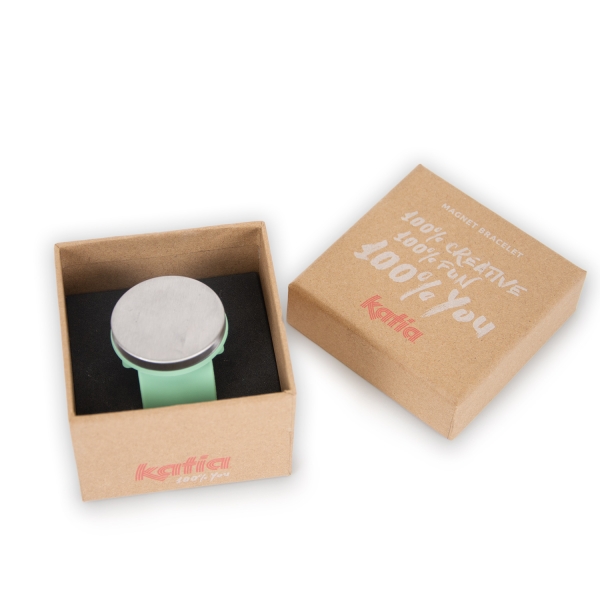 Trzymaj pod ręką szpilki, metalowe znaczniki ściegów lub magnetyczny licznik rzędów podczas szycia lub robienia na drutach dzięki tej okrągłej bransoletce magnetycznej z kolekcji akcesoriów Katia 100% You. Łatwo załóż magnetyczną bransoletkę na nadgarstek dzięki automatycznemu zatrzaskowi paska. Ta bransoletka, która jest kompatybilna z licznikiem rzędów, jest dostarczana w kwadratowym pudełku.