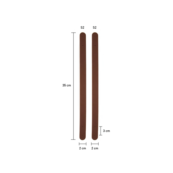 Para krótkich rączek z ekoskóry, 2 x 35 cm długości. Idealne do ręcznie robionych torebek lub małych toreb typu tote. Końce z otworami umożliwiają łatwe przyszycie lub przynitowanie do tkaniny, robótek szydełkowych lub na drutach.