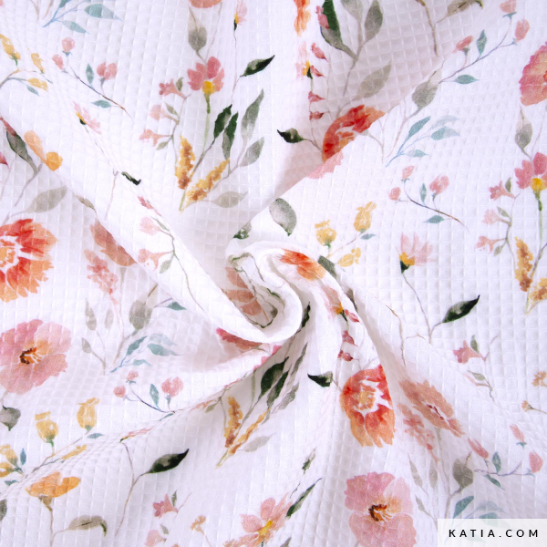 Odkryj miękkość i wyjątkową fakturę tkaniny waflowej Amazonia Flowers od Katia Fabrics – z tłoczonym wzorem przypominającym gofry. To 100% bawełna z uroczym kwiatowym nadrukiem w naturalnych kolorach. Struktura w formie plastra miodu sprawia, że jest idealna do szycia kocyków, ręczników dla niemowląt, otulaczy, szlafroków i dziecięcych akcesoriów. Przewiewna i lekka – doskonała do wygodnych i delikatnych projektów krawieckich.