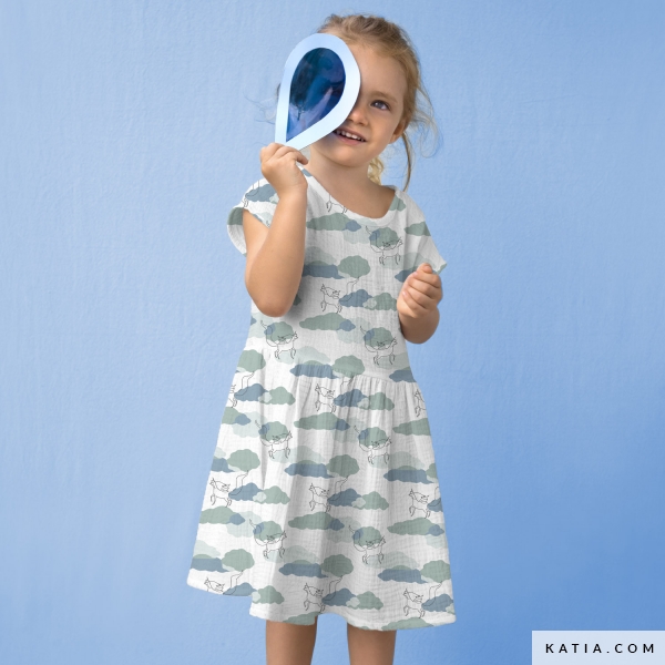 Nadruk chmurki i jednorożca na białym tle. Dwuwarstwowa tkanina o bardzo miękkim i przyjemnym chwycie. Do szycia ubranek i akcesoriów dla niemowląt. 100% bawełna.