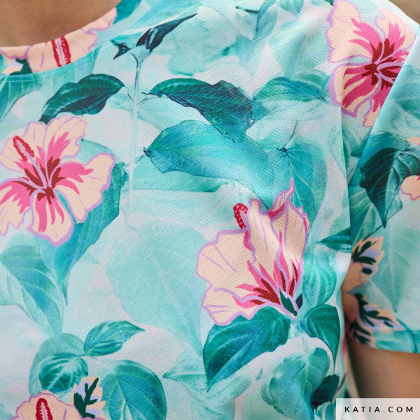 Dodaj egzotyczny akcent do swojej odzieży sportowej dzięki tkaninie Hibiscus Sport od Katia Fabrics, materiałowi oddychającemu z żywym tropikalnym nadrukiem hibiskusa i zielonych liści na wodnym tle. Ta elastyczna tkanina szybko schnąca idealnie nadaje się do szycia spersonalizowanych koszulek sportowych, idealnych do treningów, biegania lub aktywności na świeżym powietrzu. Jej miękkość i wytrzymałość zapewniają komfort i trwałość przy każdym użyciu.